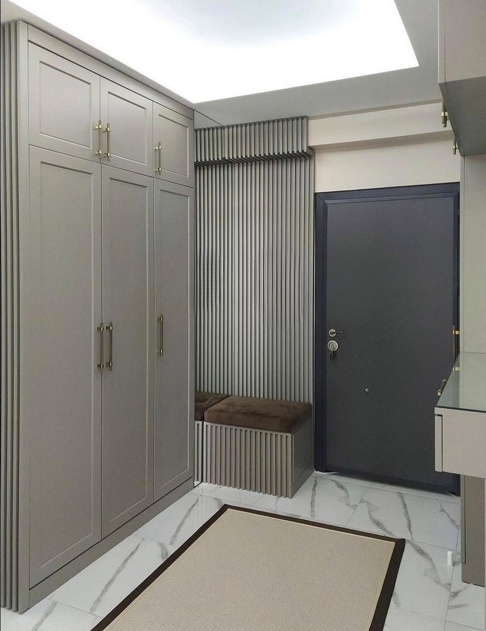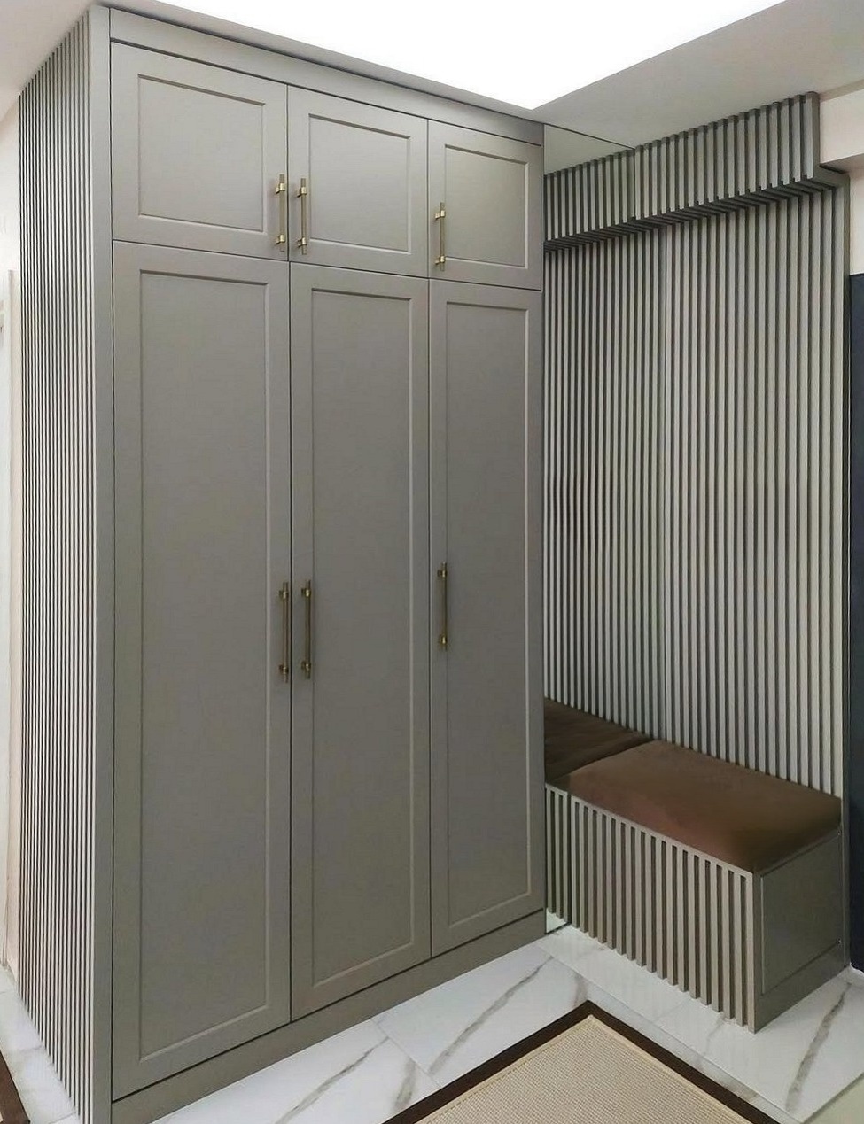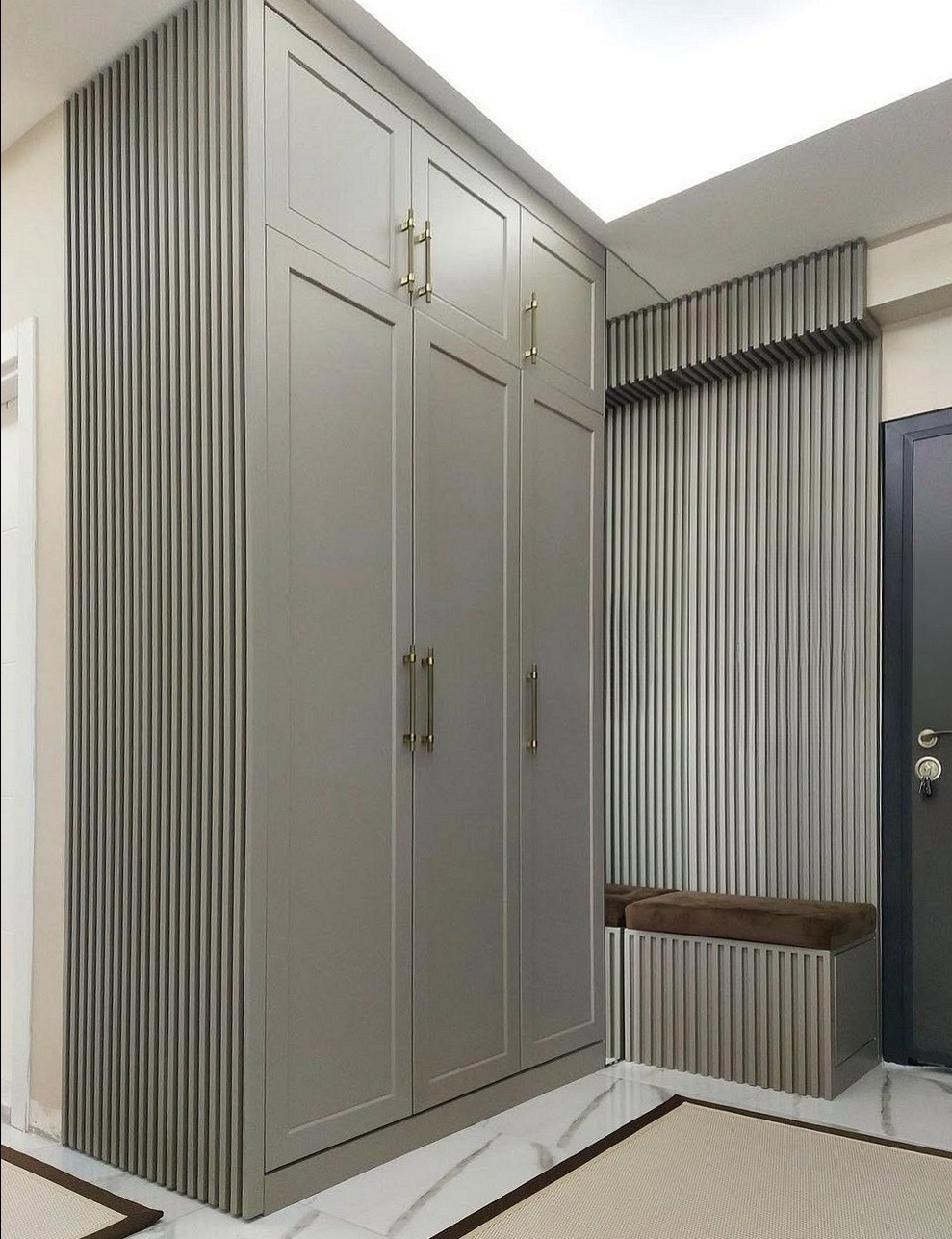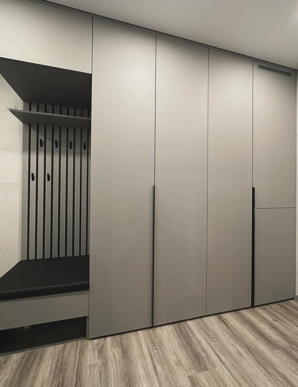 Большой серый шкаф в прихожую с фрезерованными дверями «Модель 311»