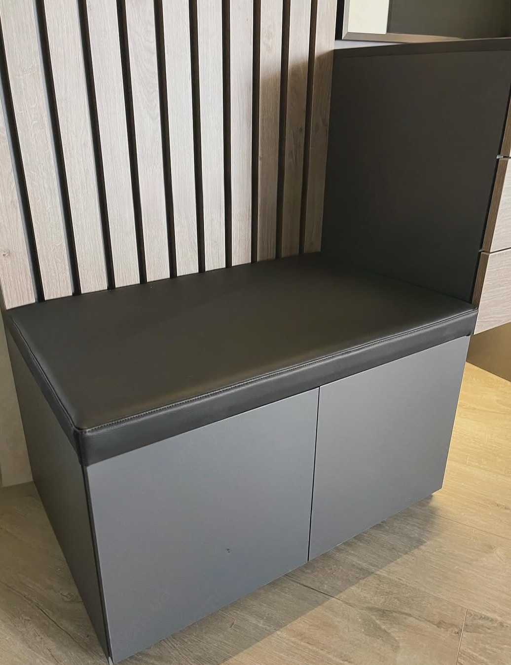 Темно-серый шкаф с фрезерованными дверями и пантографом «Модель 303»