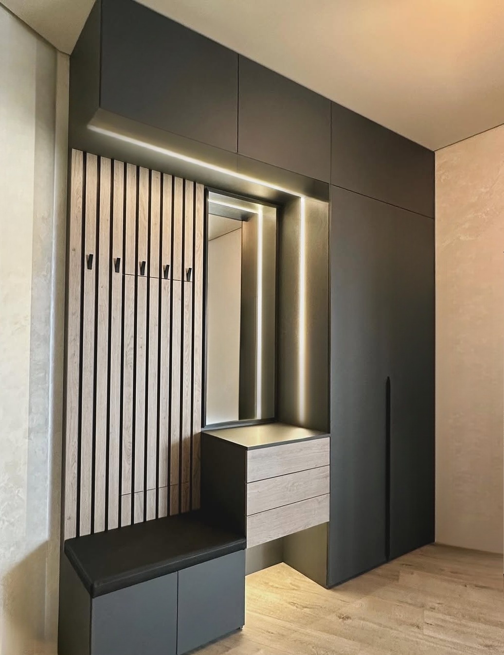 Встроенная прихожая с обувницей и вешалкой «Модель 285»