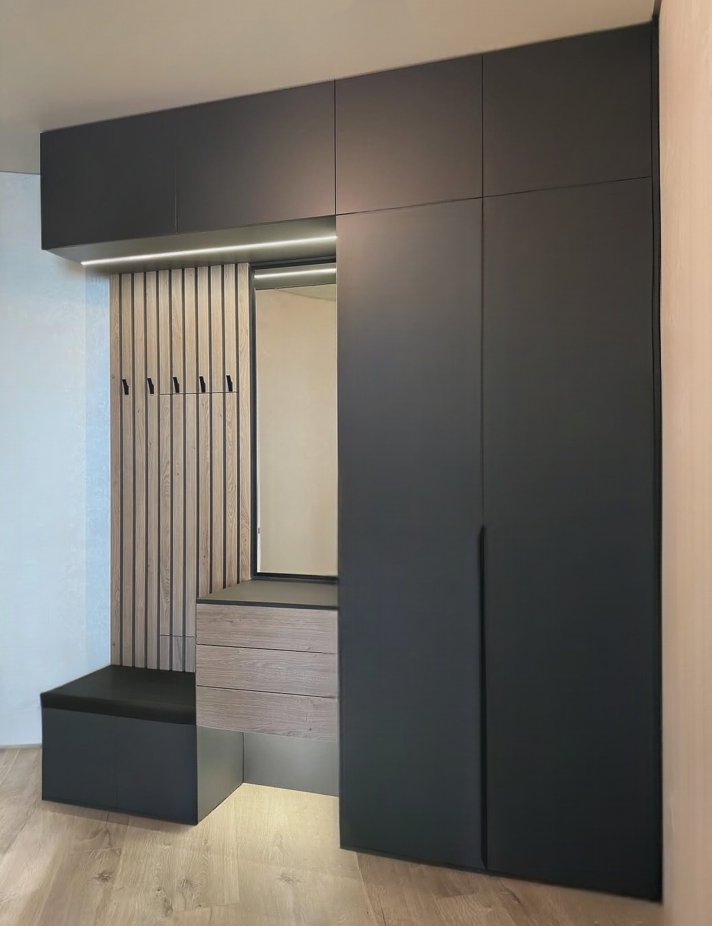 Черный встроенный шкаф с пеналом в прихожую «Модель 294»