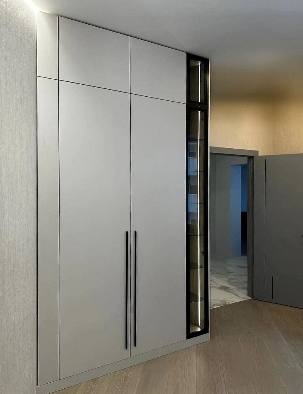 Большой светло-серый шкаф в коридор «Модель 340»