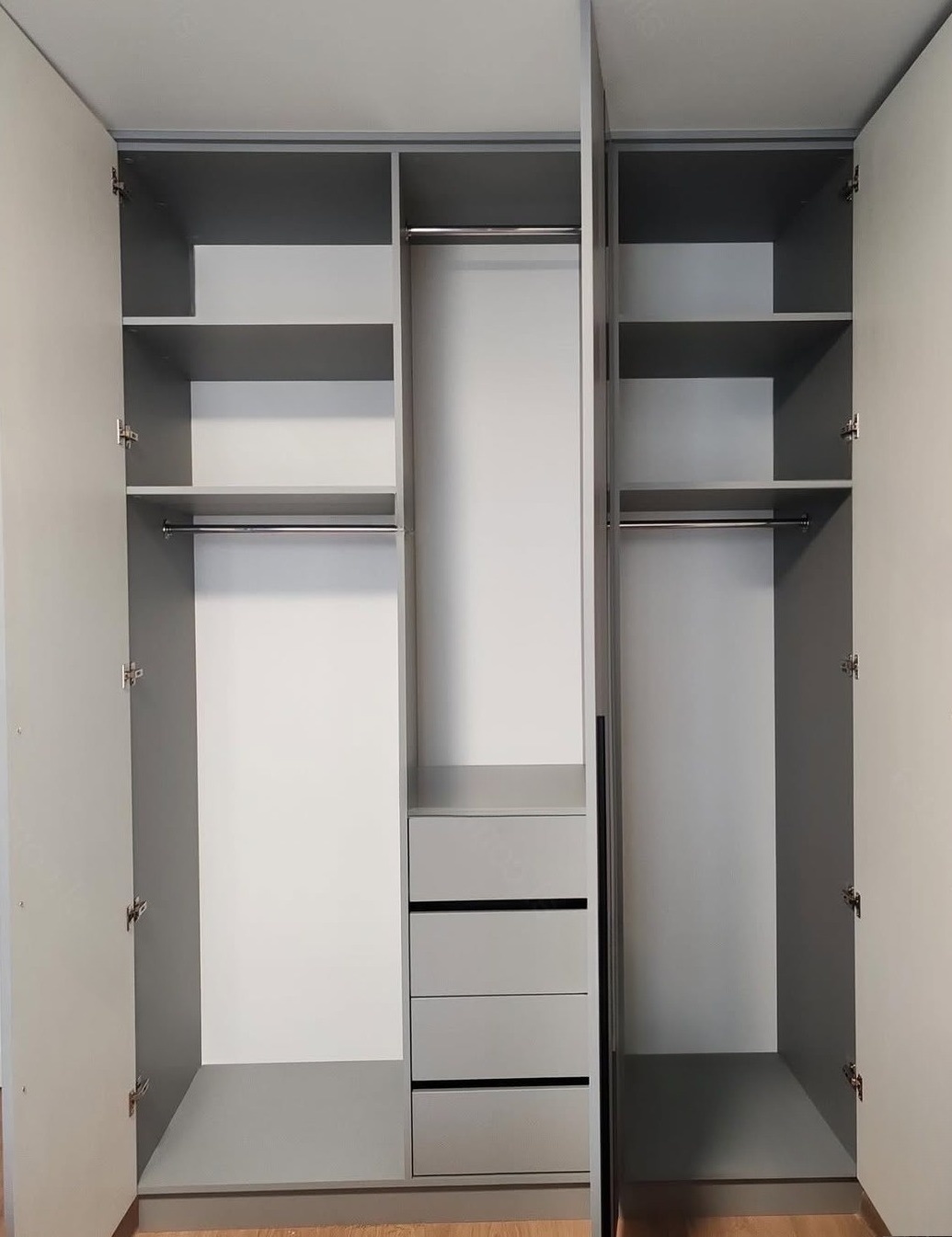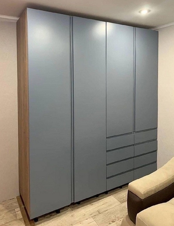 Серый распашной шкаф-гардероб с выдвижными ящиками «Модель 317»
