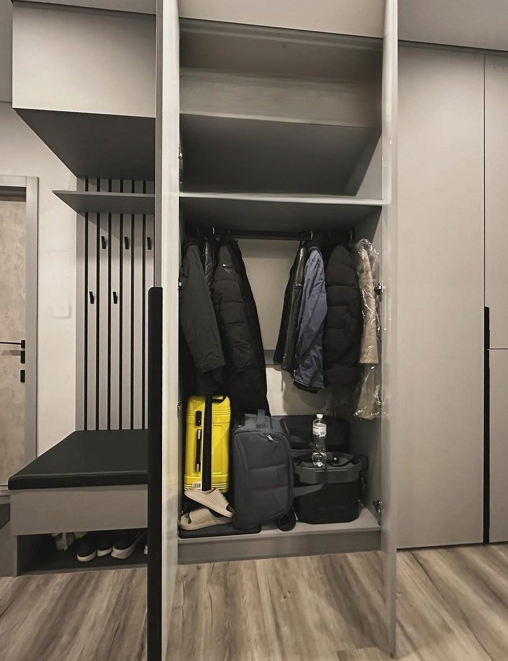 Большая серая прихожая с открытым пеналом «Модель 322»