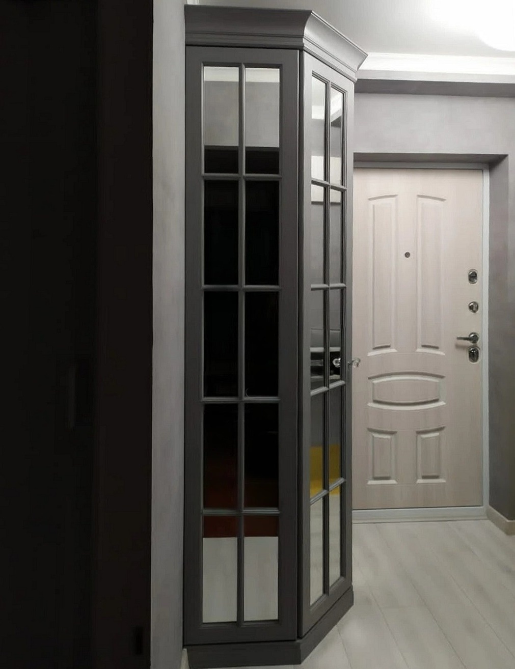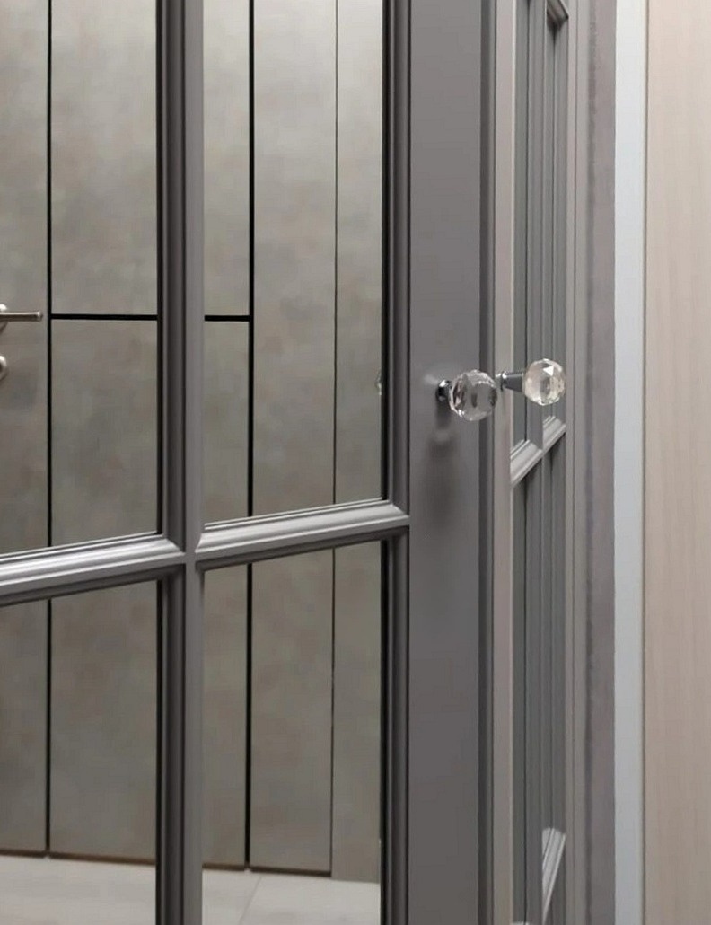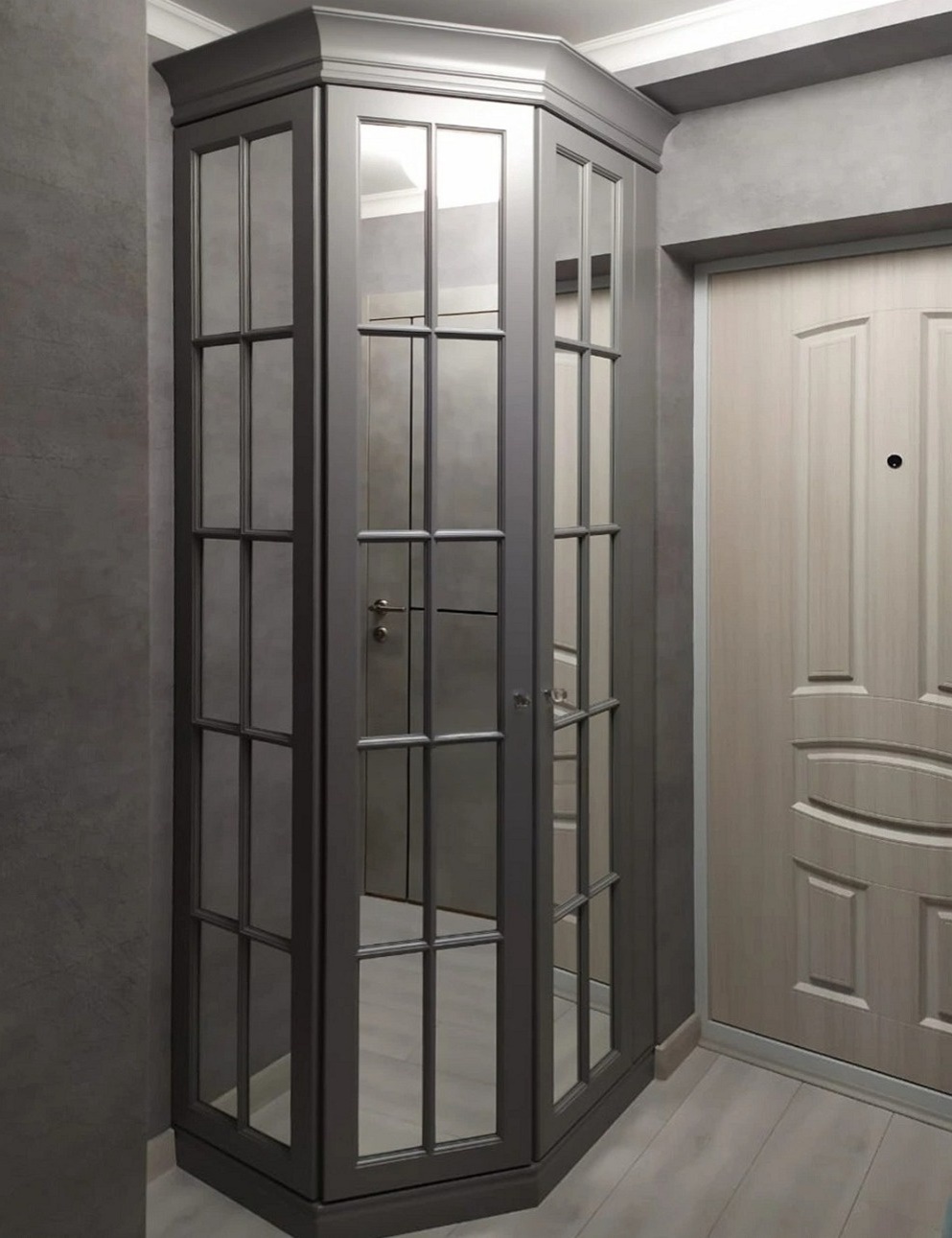 Серый шкаф-купе с диагональным делением и зеркалом «Модель 560»
