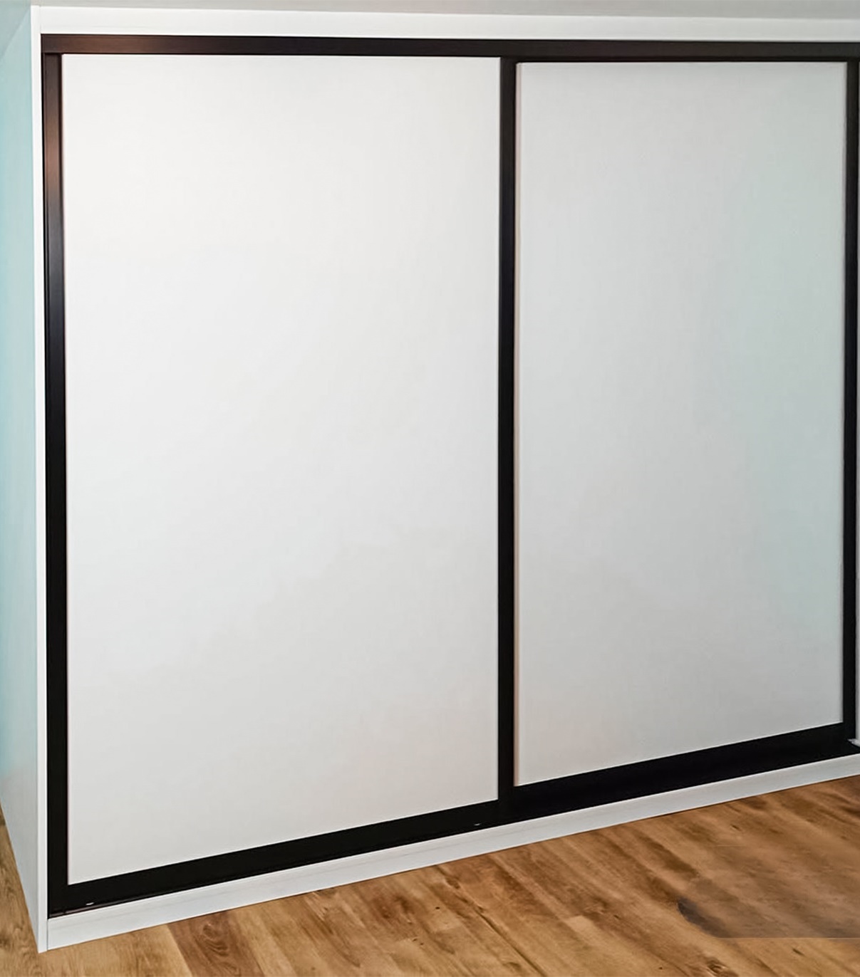 Без зеркал белый встроенный шкаф-купе с черным профилем «Модель 650»