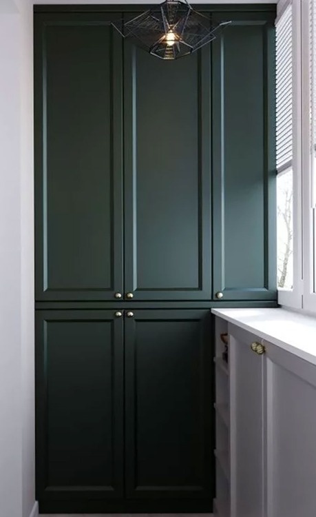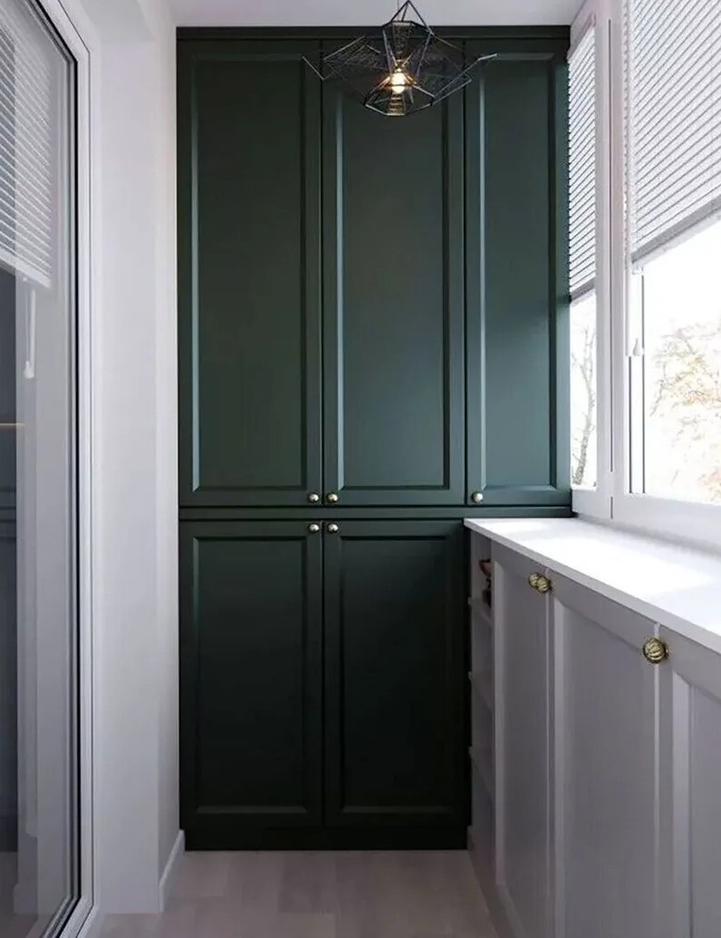 Классический шкаф зеленого цвета ИЗ МДФ на балкон «Модель 966»