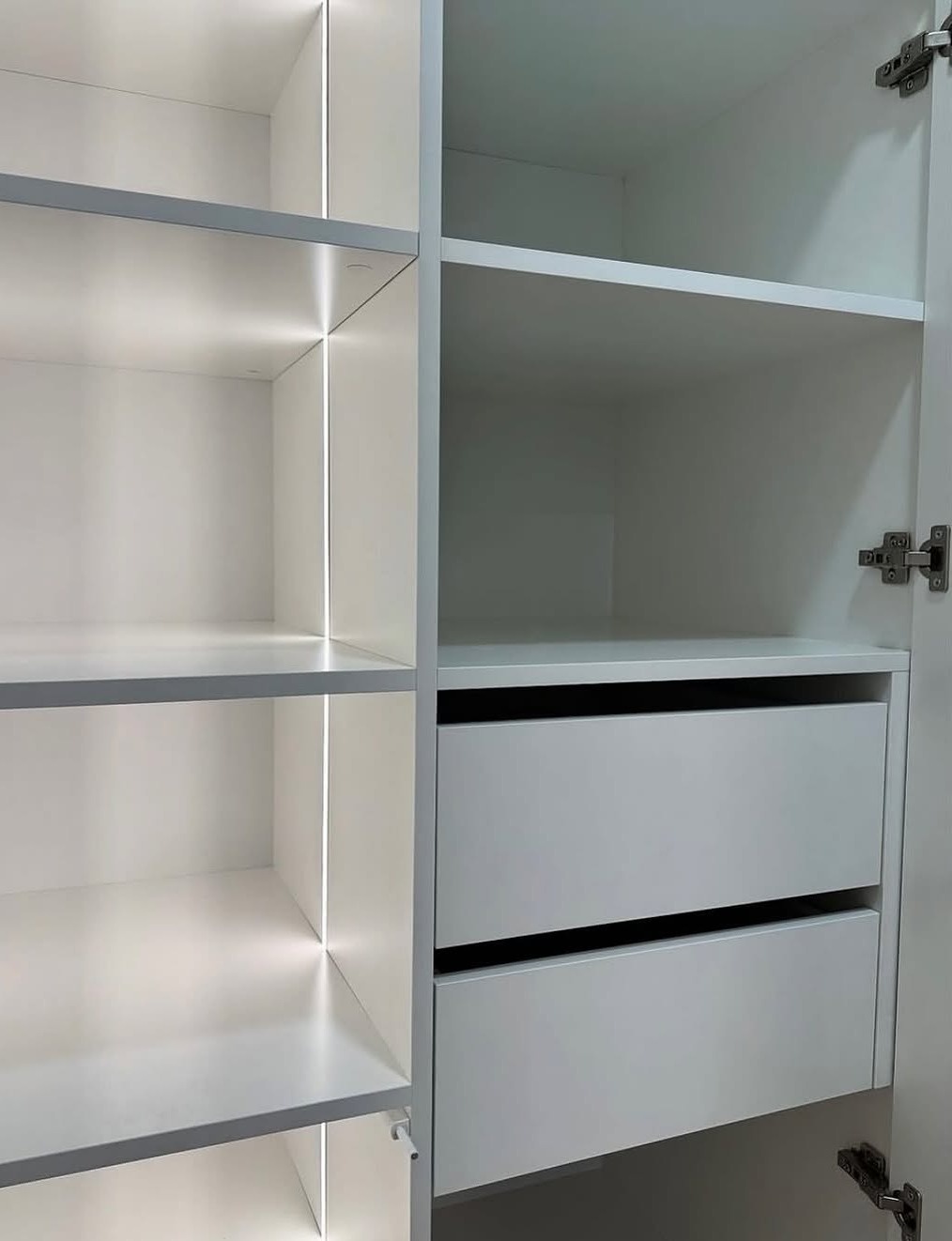 Встроенный белый шкаф из МДФ с фрезеровкой «Модель 491»