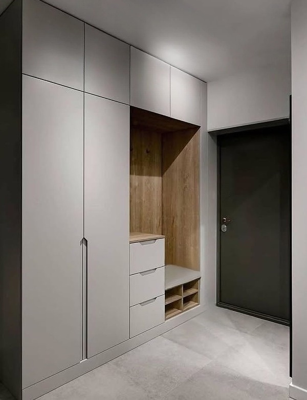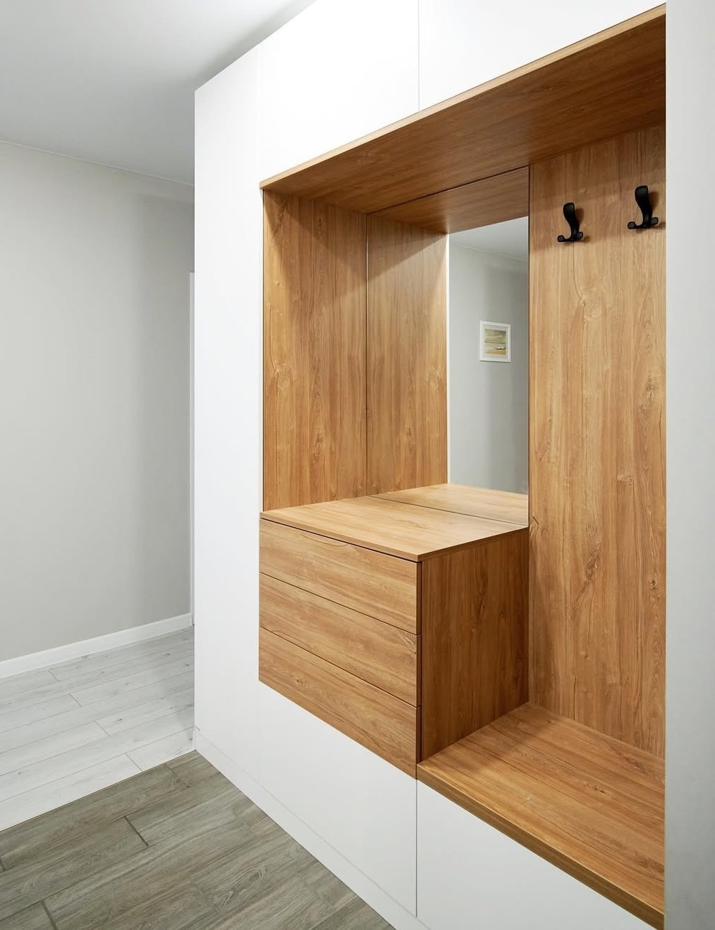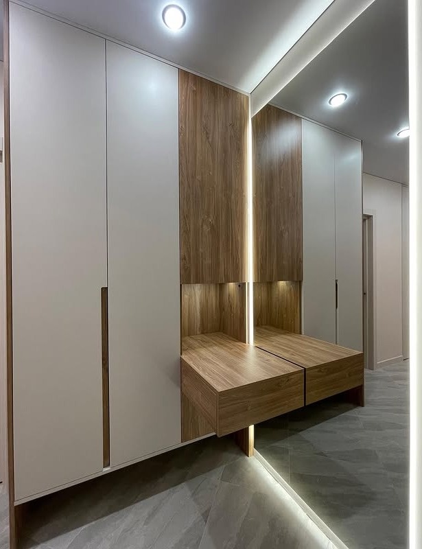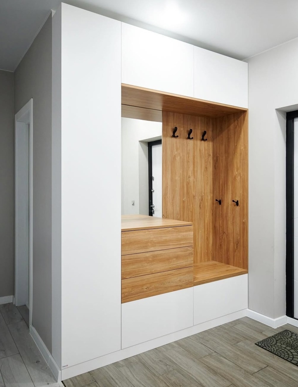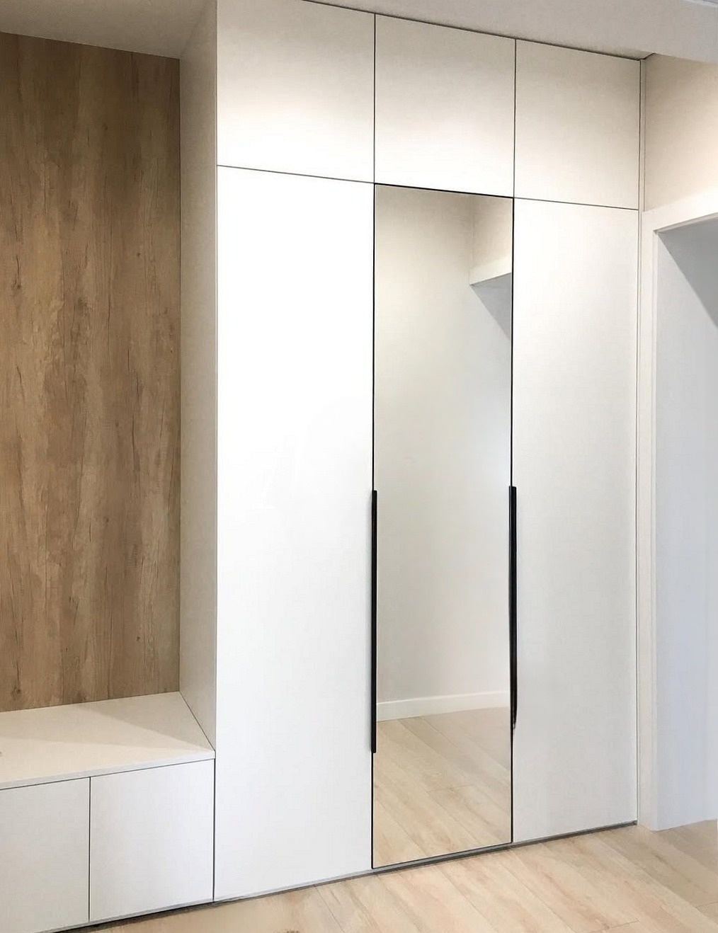 Встроенная прихожая в скандинавском стиле с зеркалом «Модель 332»