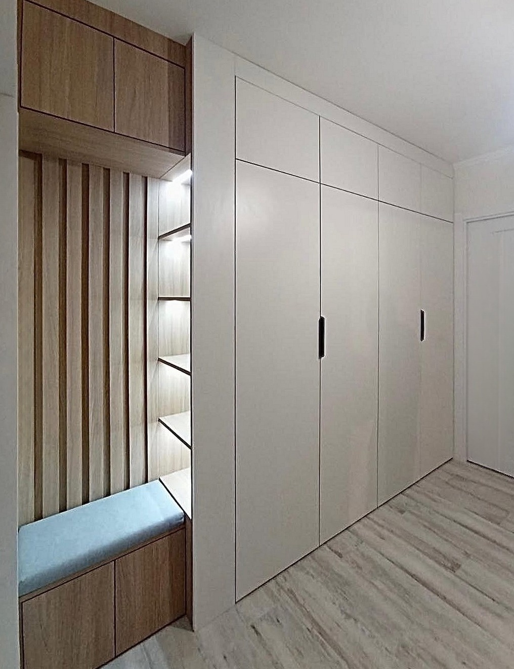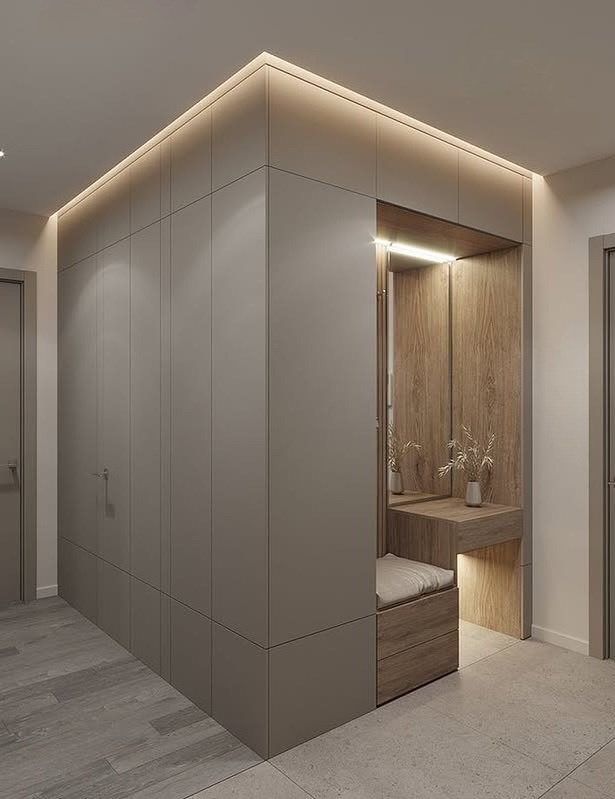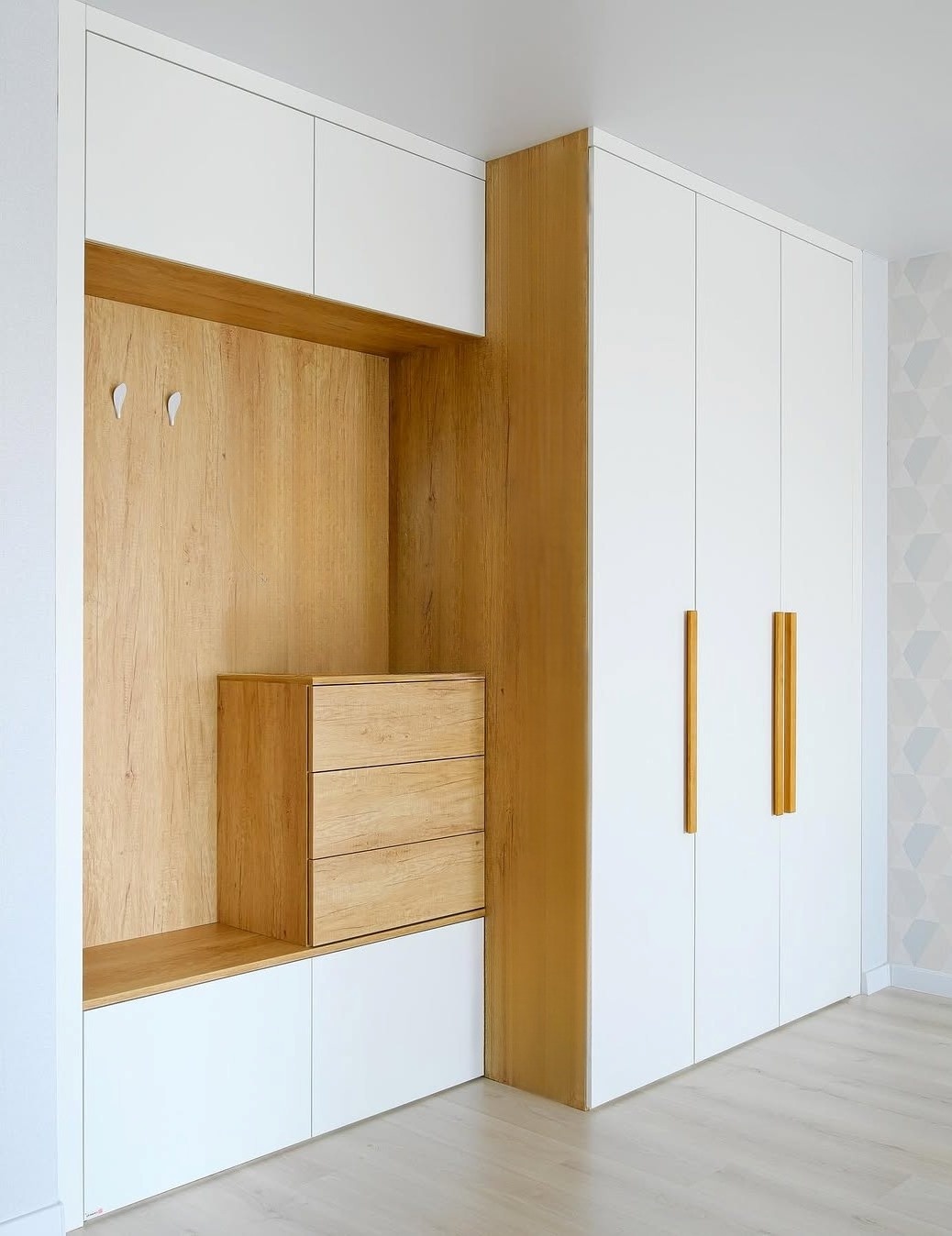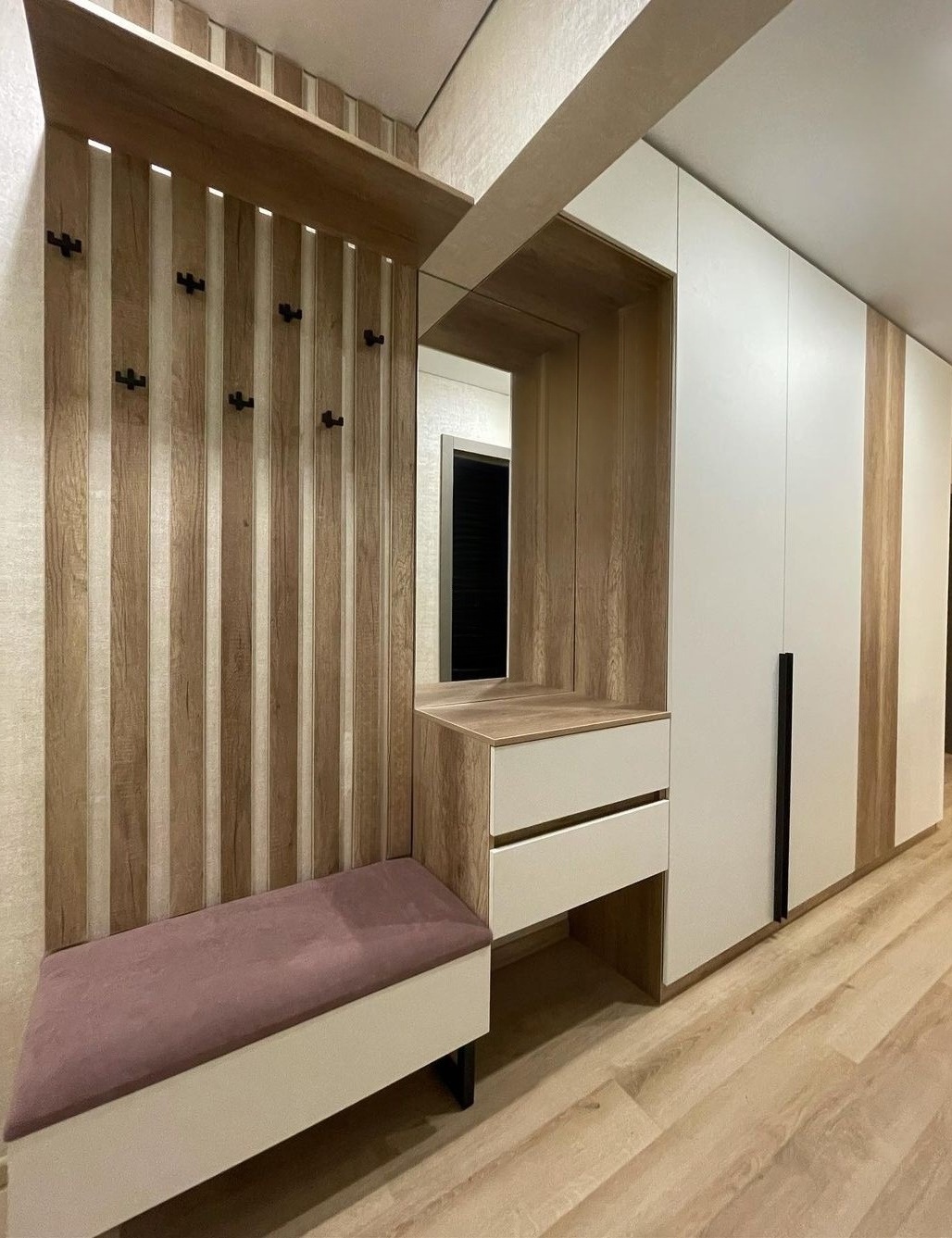 Встроенная прихожая в скандинавском стиле с зеркалом «Модель 332»