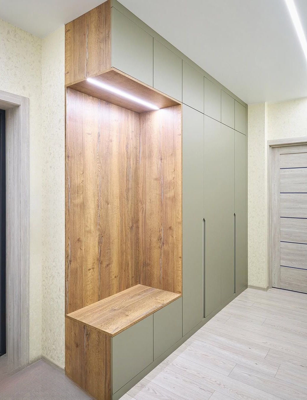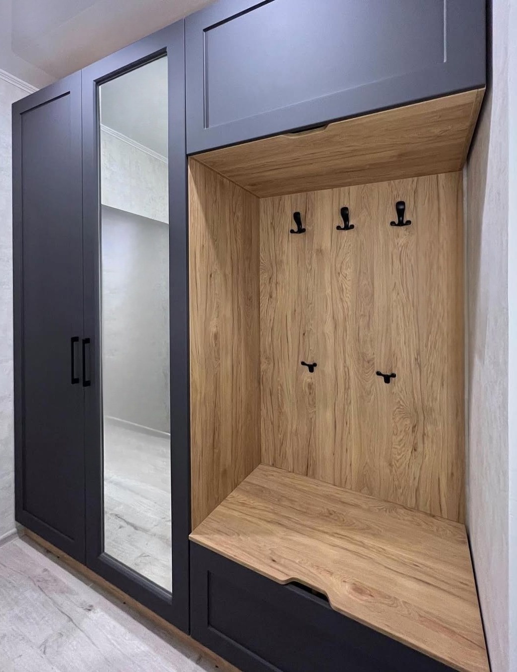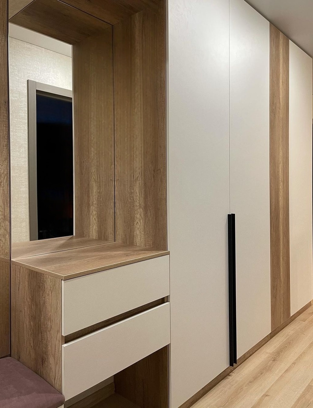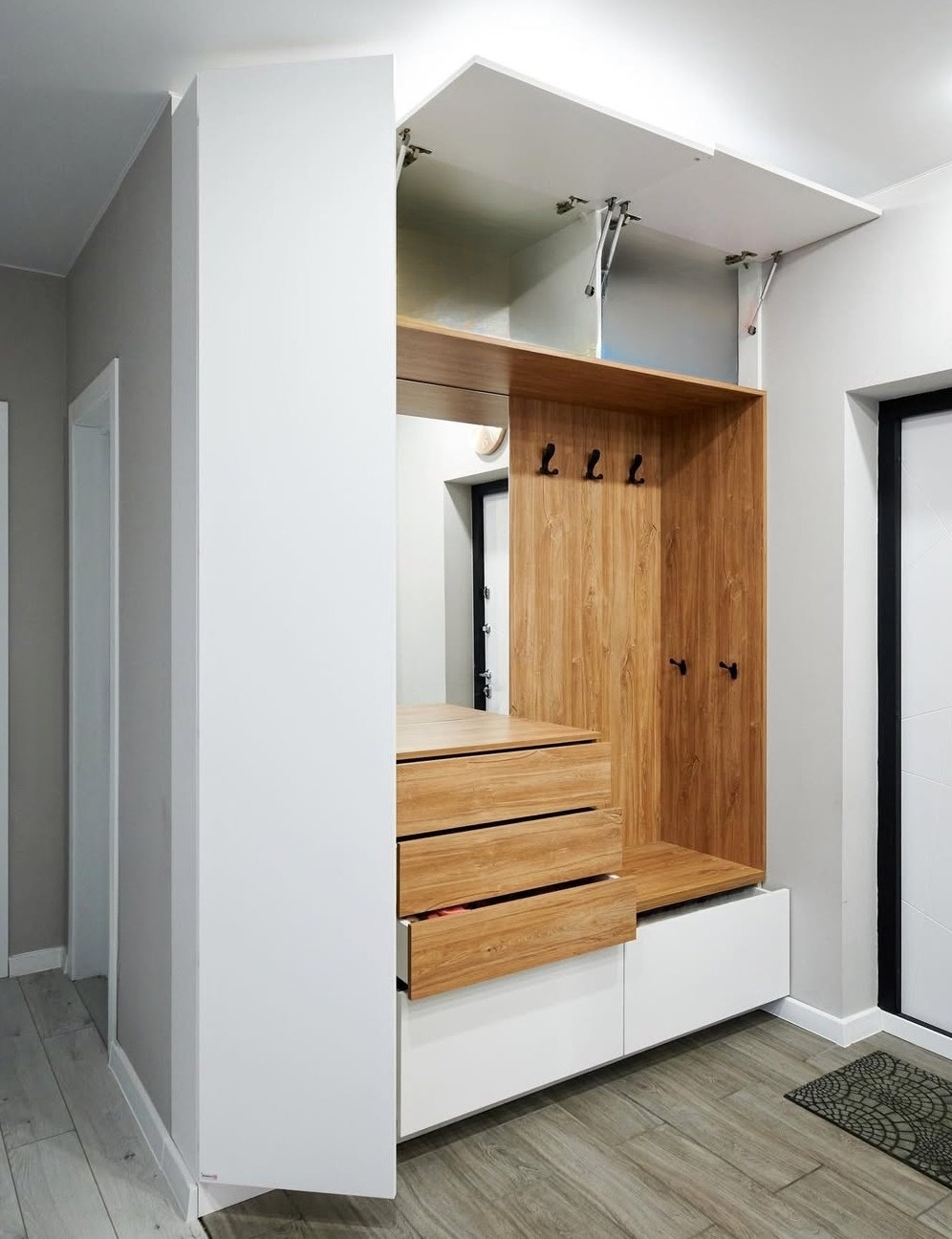 Встроенная прихожая в скандинавском стиле с зеркалом «Модель 332»