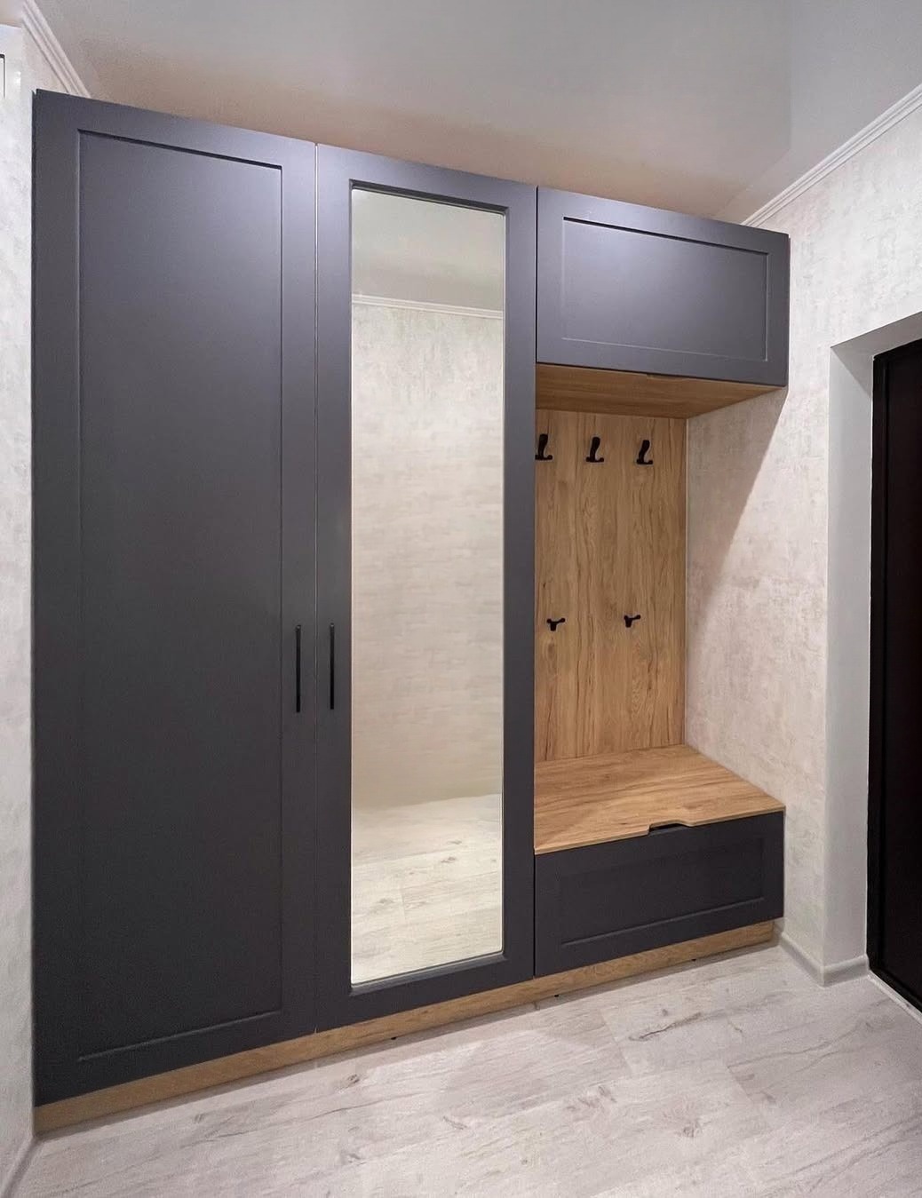 Прихожая на заказ темно-серого цвета с зеркалом «Модель 430»