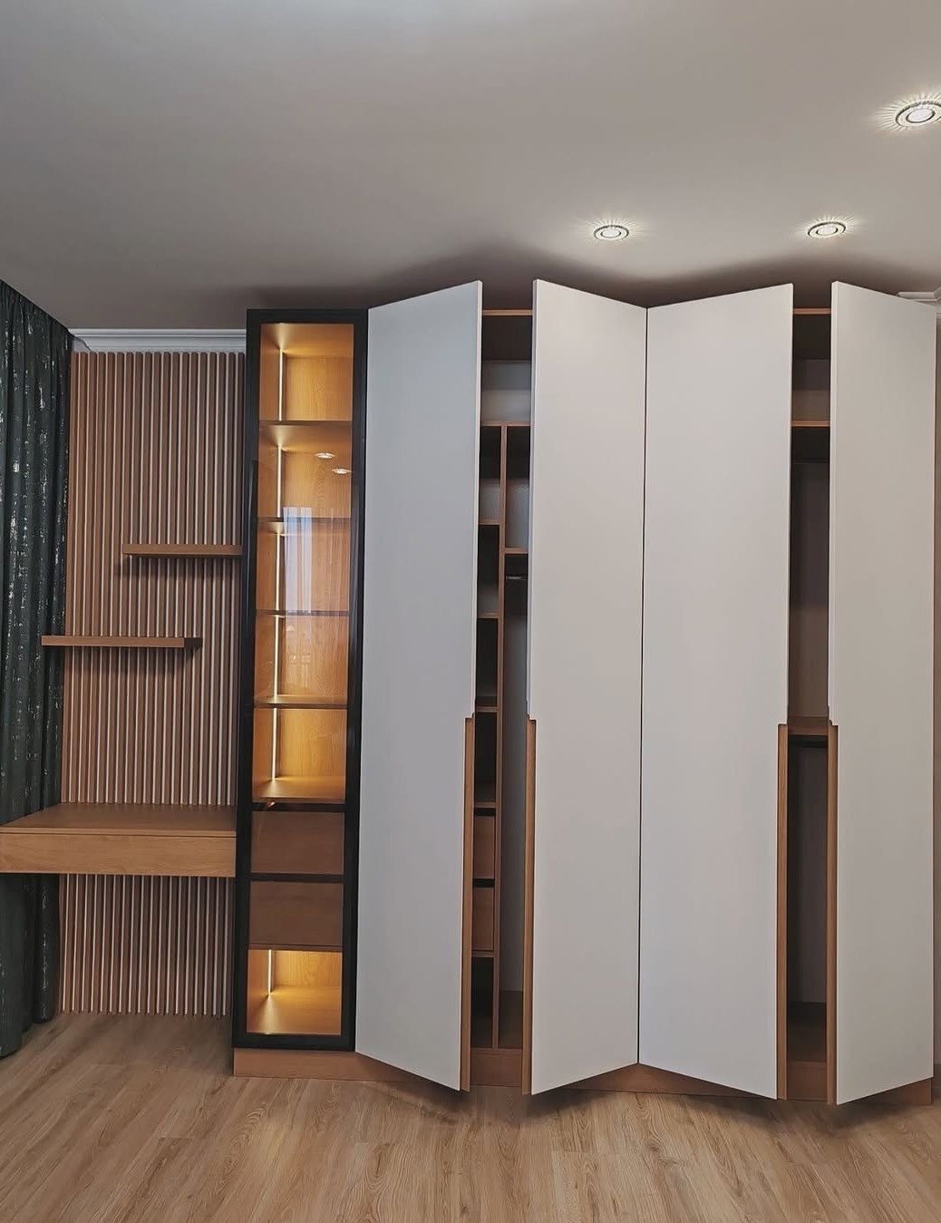Большой шкаф от стены до стены с открытой витриной «Модель 399»