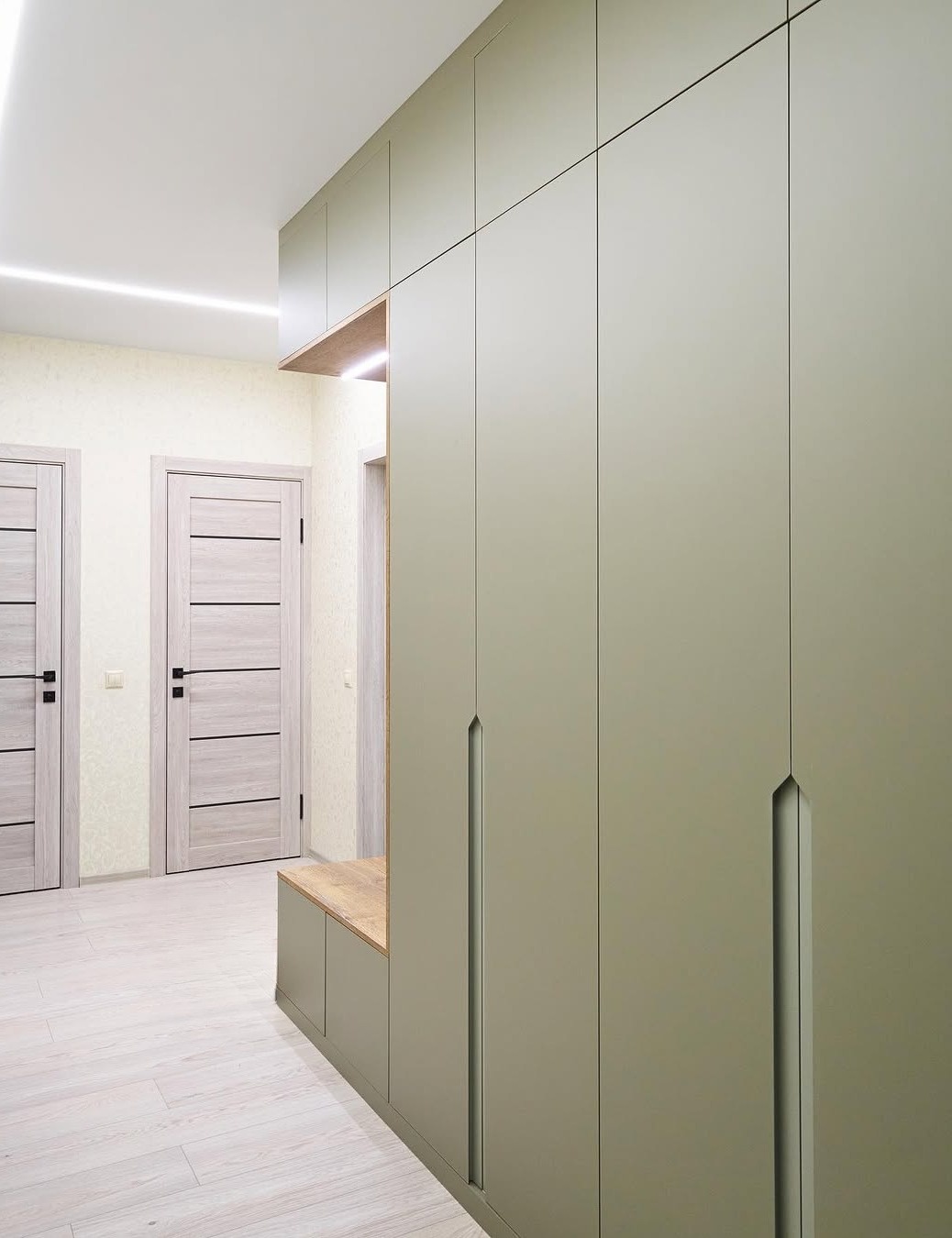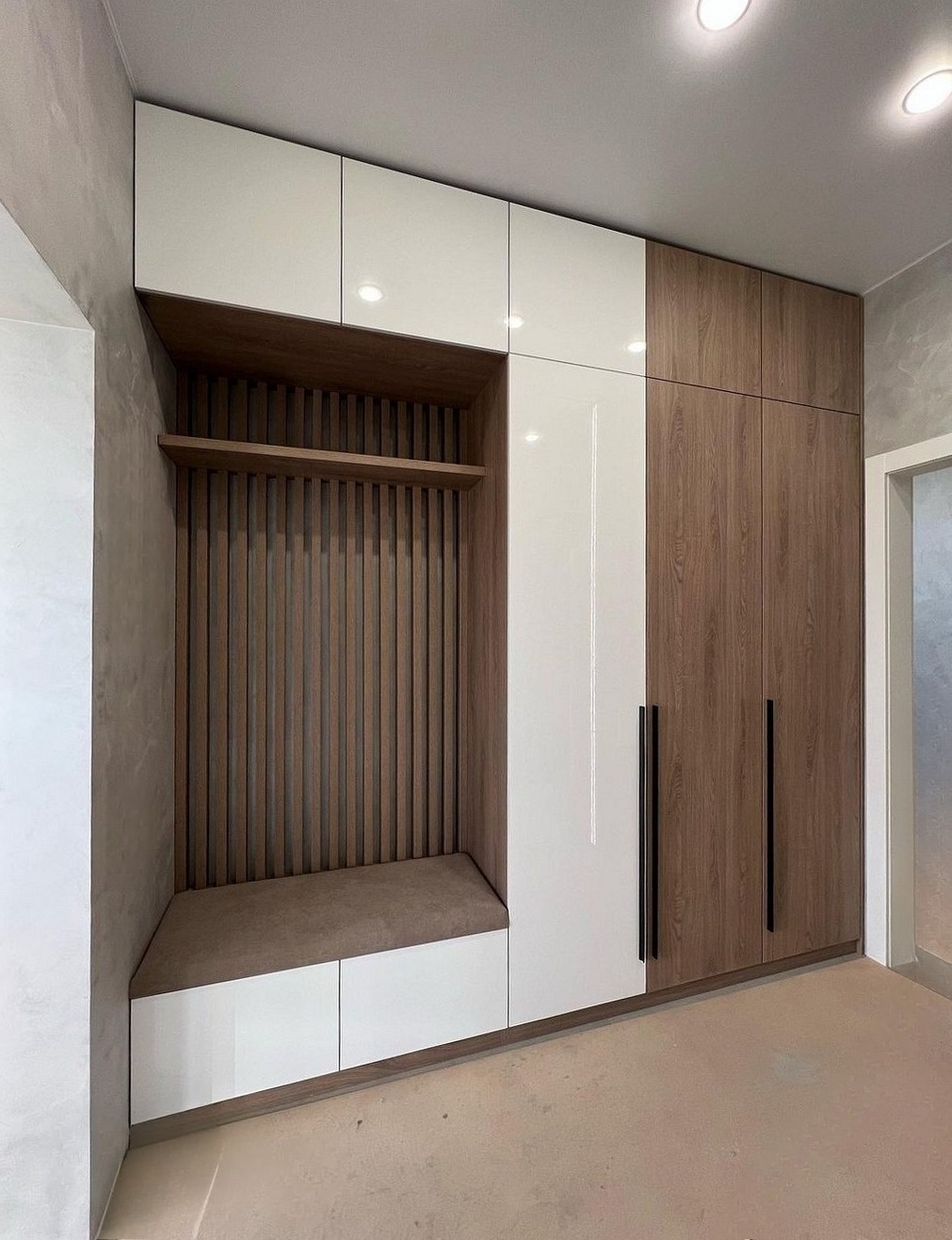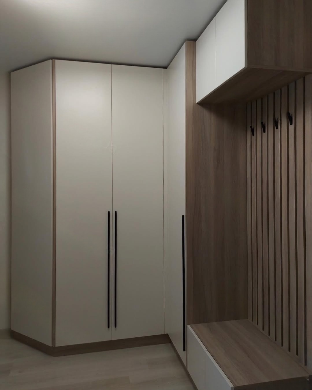 Встроенная прихожая в скандинавском стиле с антресолью «Модель 412»