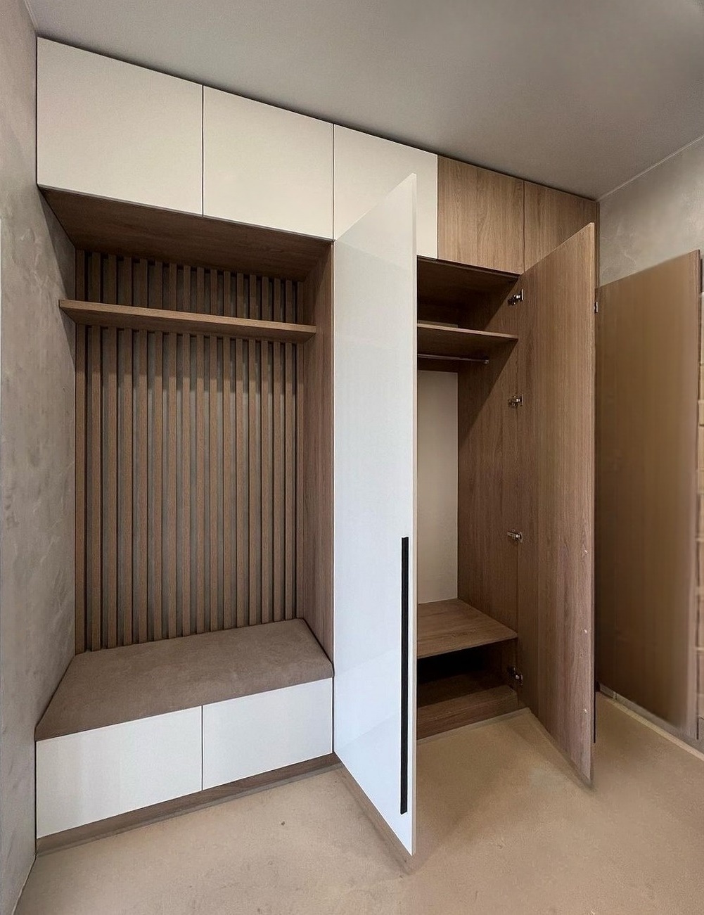 Прихожая в стиле сканди с мягкой банкеткой и вешалкой «Модель 487»