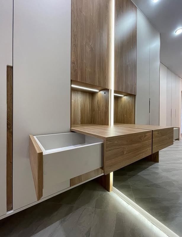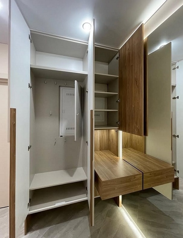 Встроенный шкаф с подсветкой и обувницей в коридор «Модель 452»