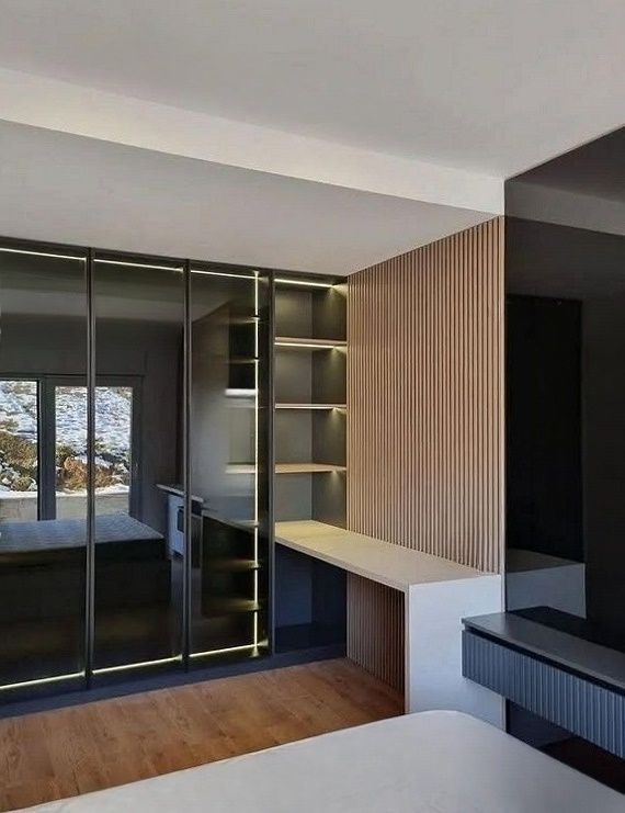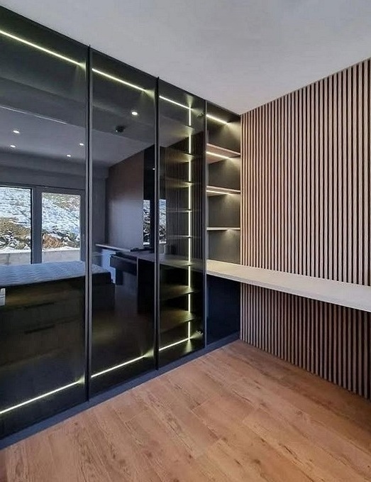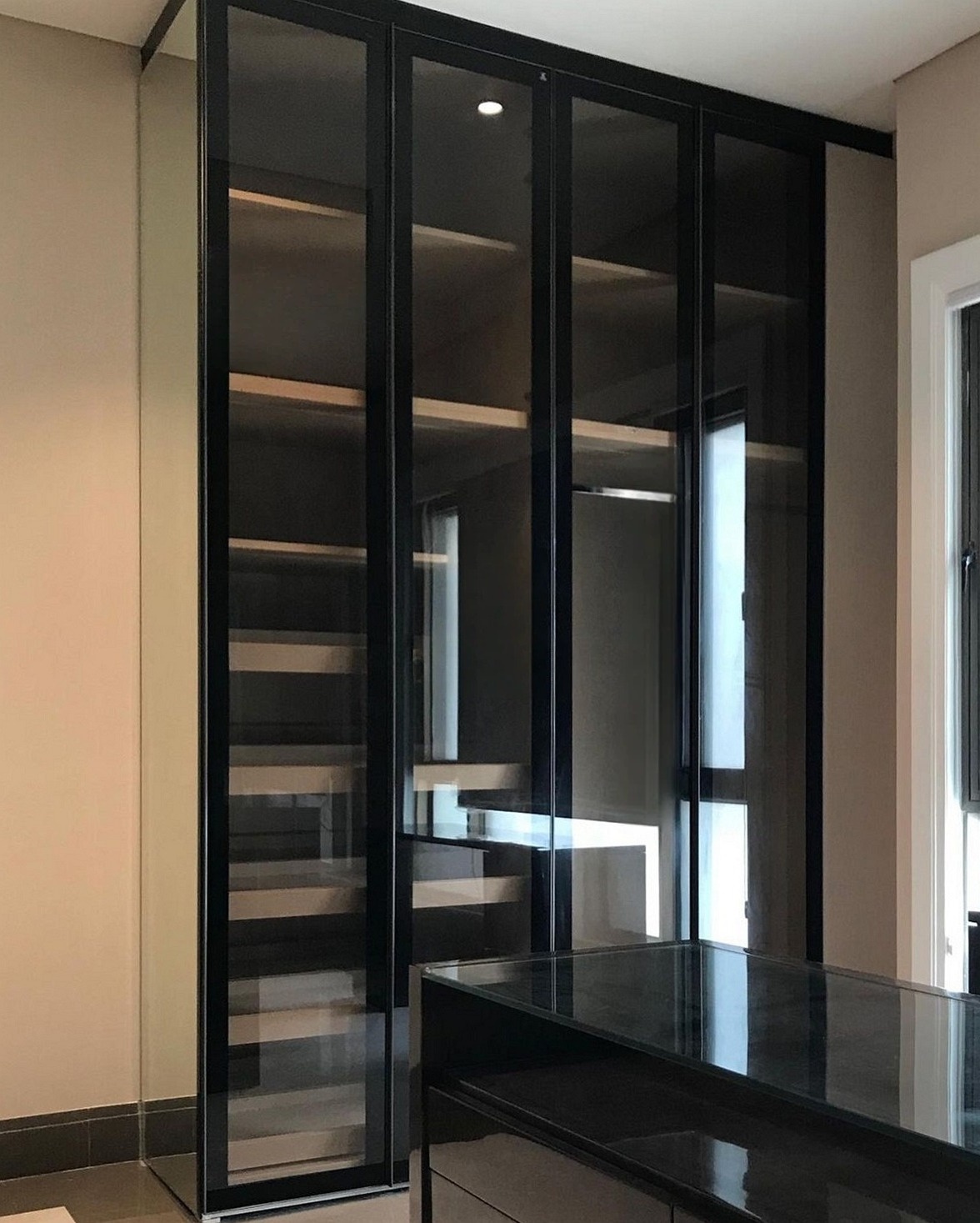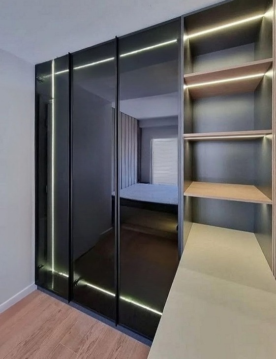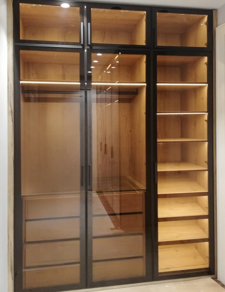 Большой встроенный шкаф из тонированного стекла с рабочей зоной «Модель 411»
