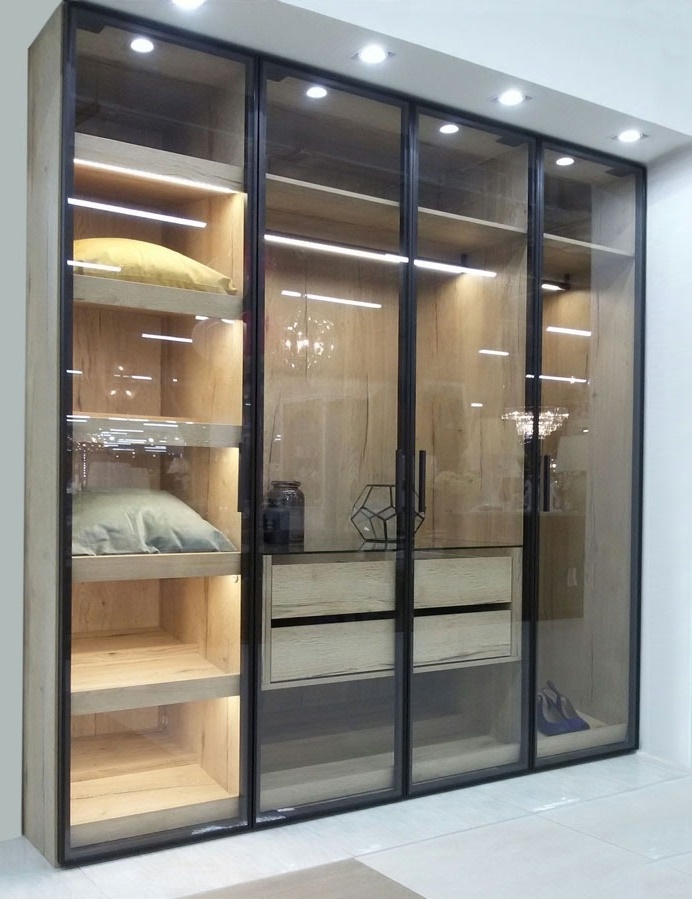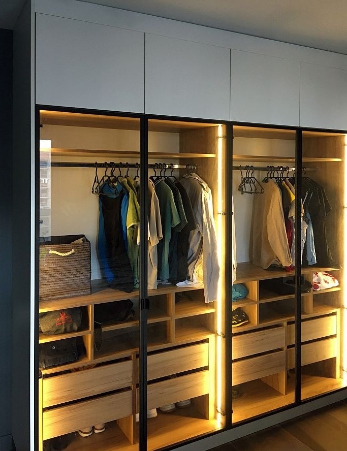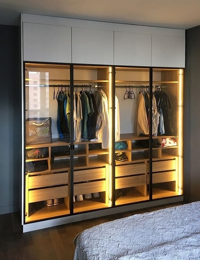 Гардеробный шкаф с подсветкой и стеклянными дверями «Модель 1118»