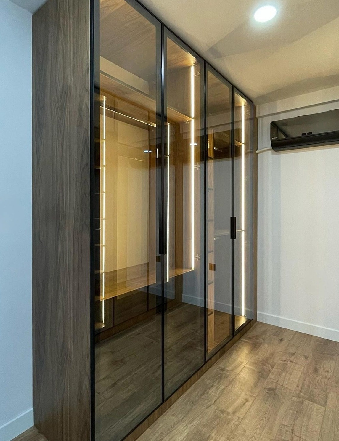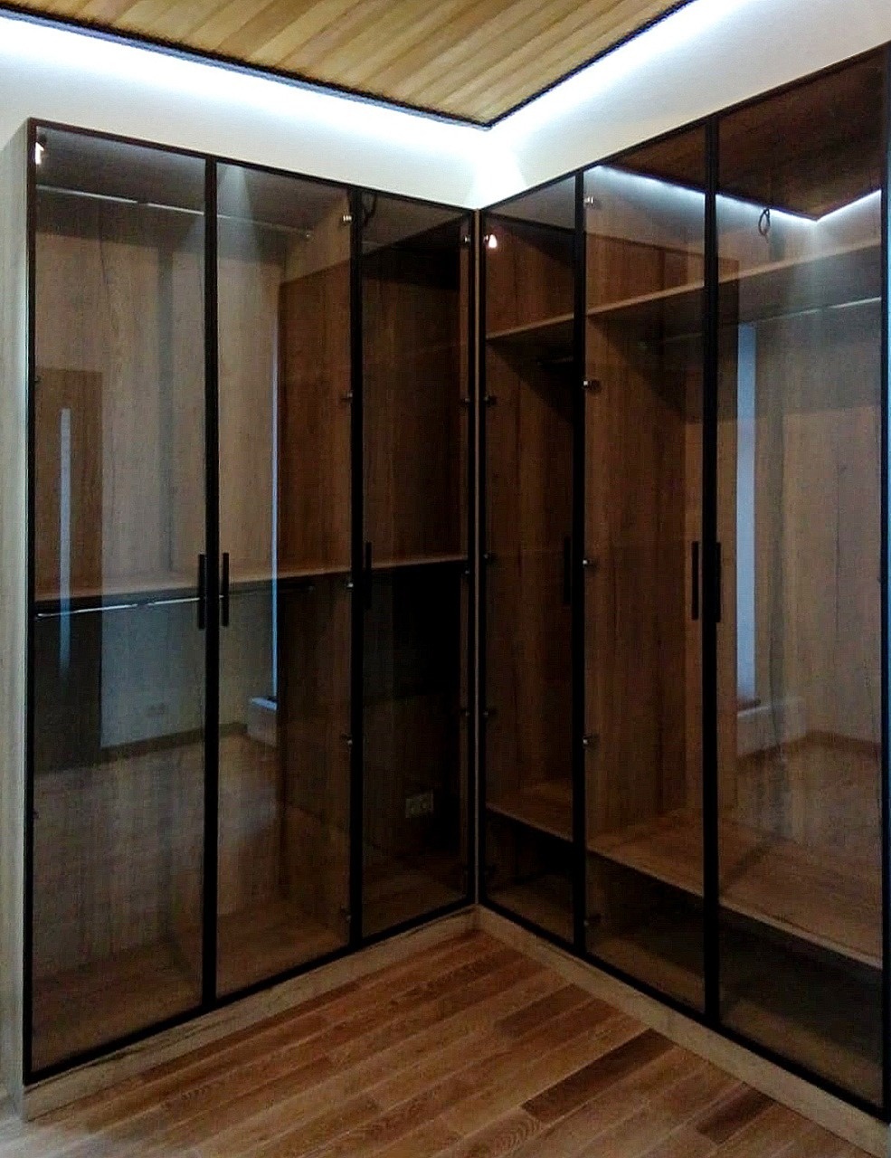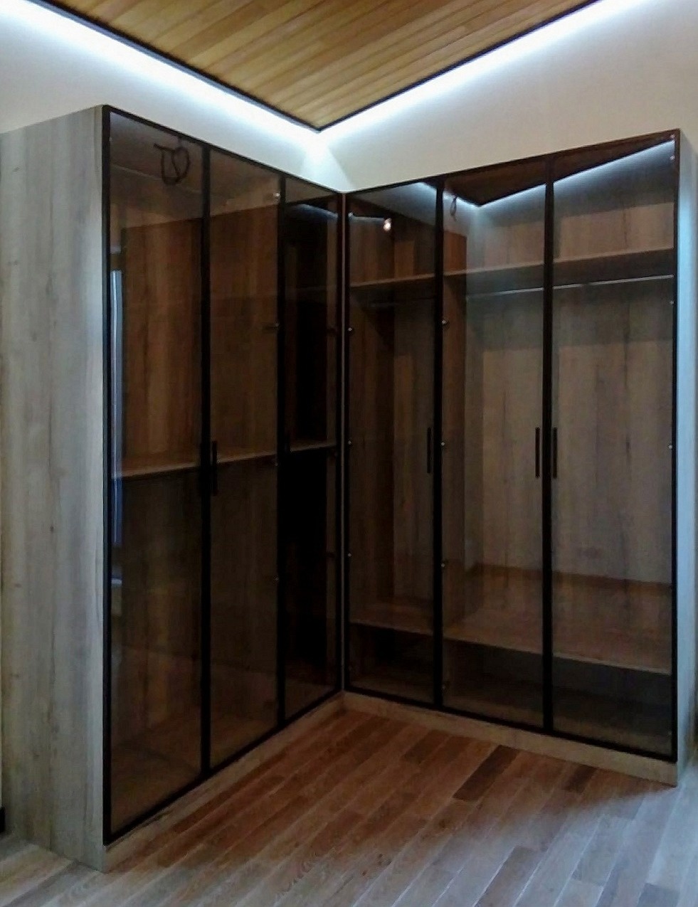 В стиле лофт гардеробная с тонированными стеклянными дверями-купе «Модель 601»