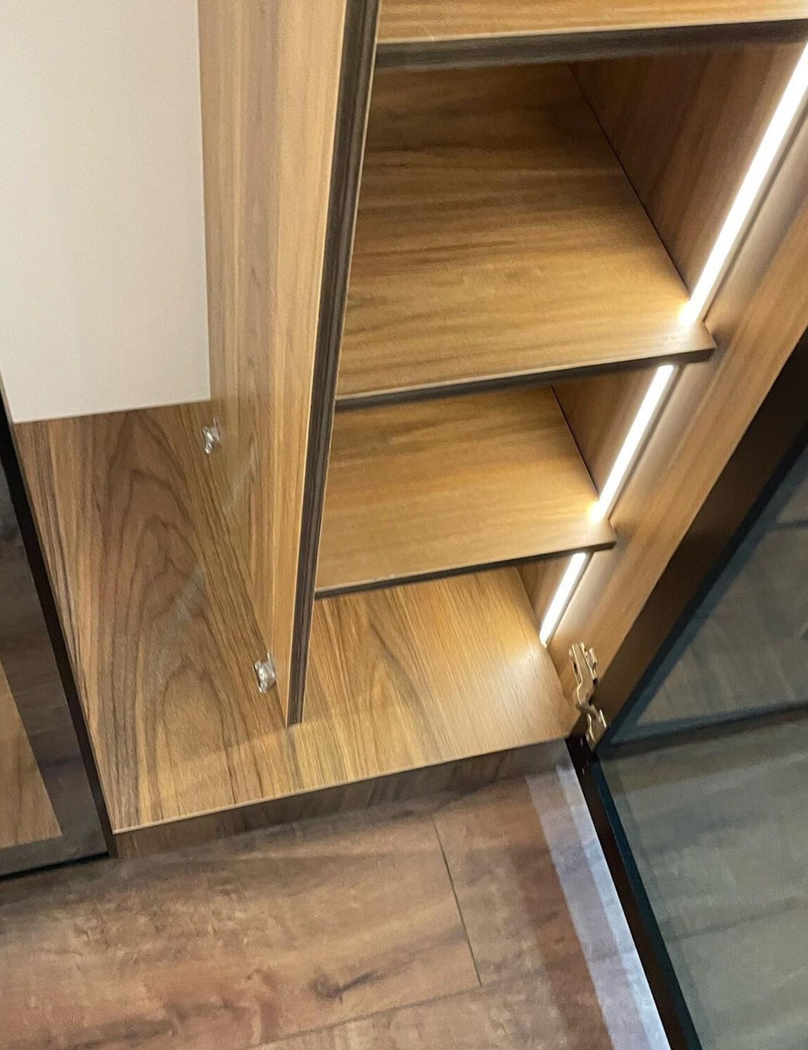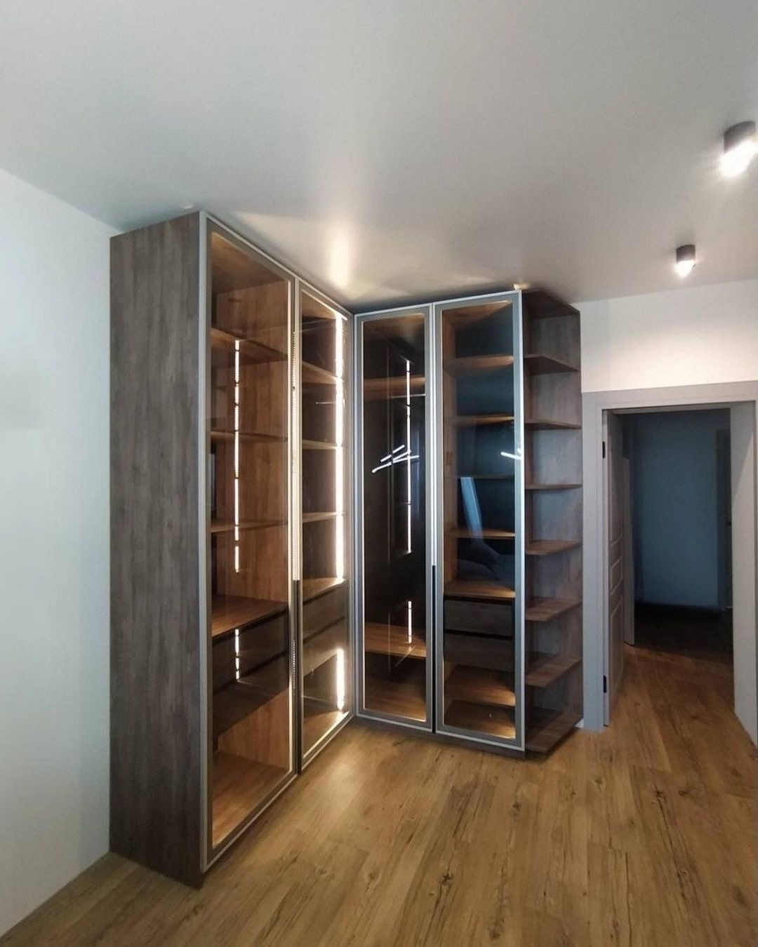 Встроенный стеклянный шкаф с подсветкой в спальню «Модель 1249»