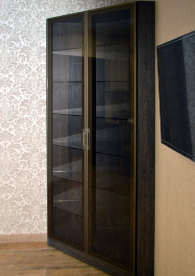 Встроенный шкаф-витрина цвета венге со стеклом «Модель 1159»