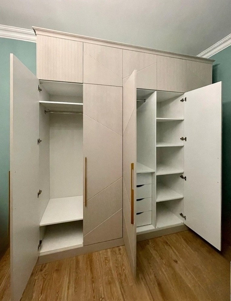 Встроенный распашной шкаф с фрезеровкой из МДФ «Модель 1»