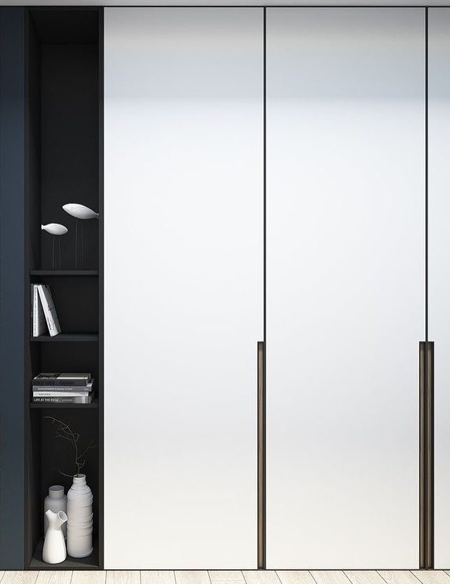 Стекло можно использовать как для полного заполнения двери, так и в качестве вставок в сочетании с другими материалами, такими как ЛДСП, зеркало или МДФ. Использование стекла в качестве фасада шкафа позволит визуально расширить пространство и внести индивидуальность в интерьер.