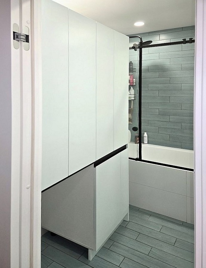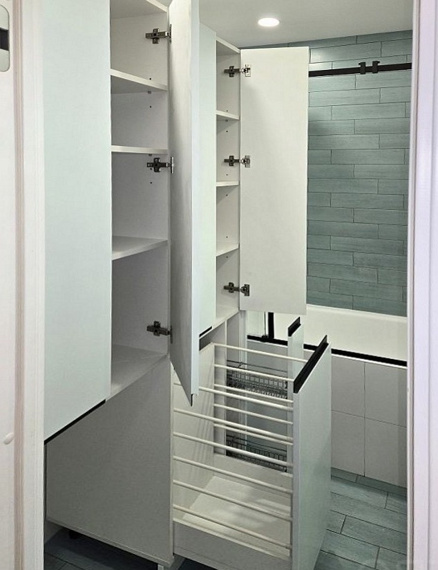 Комбинированный встроенный маленький шкаф в туалет «Модель 1041»