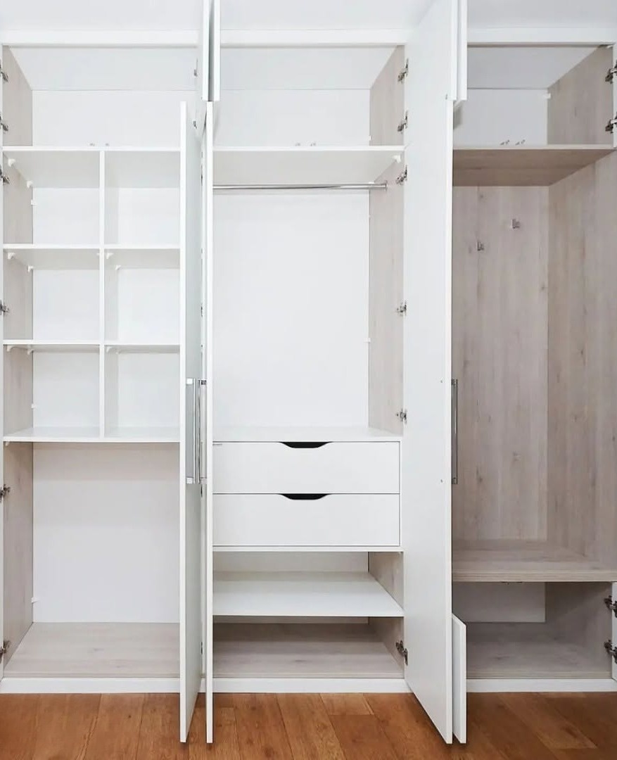 Распашной белый шкаф со встроенным комодом «Модель 495»
