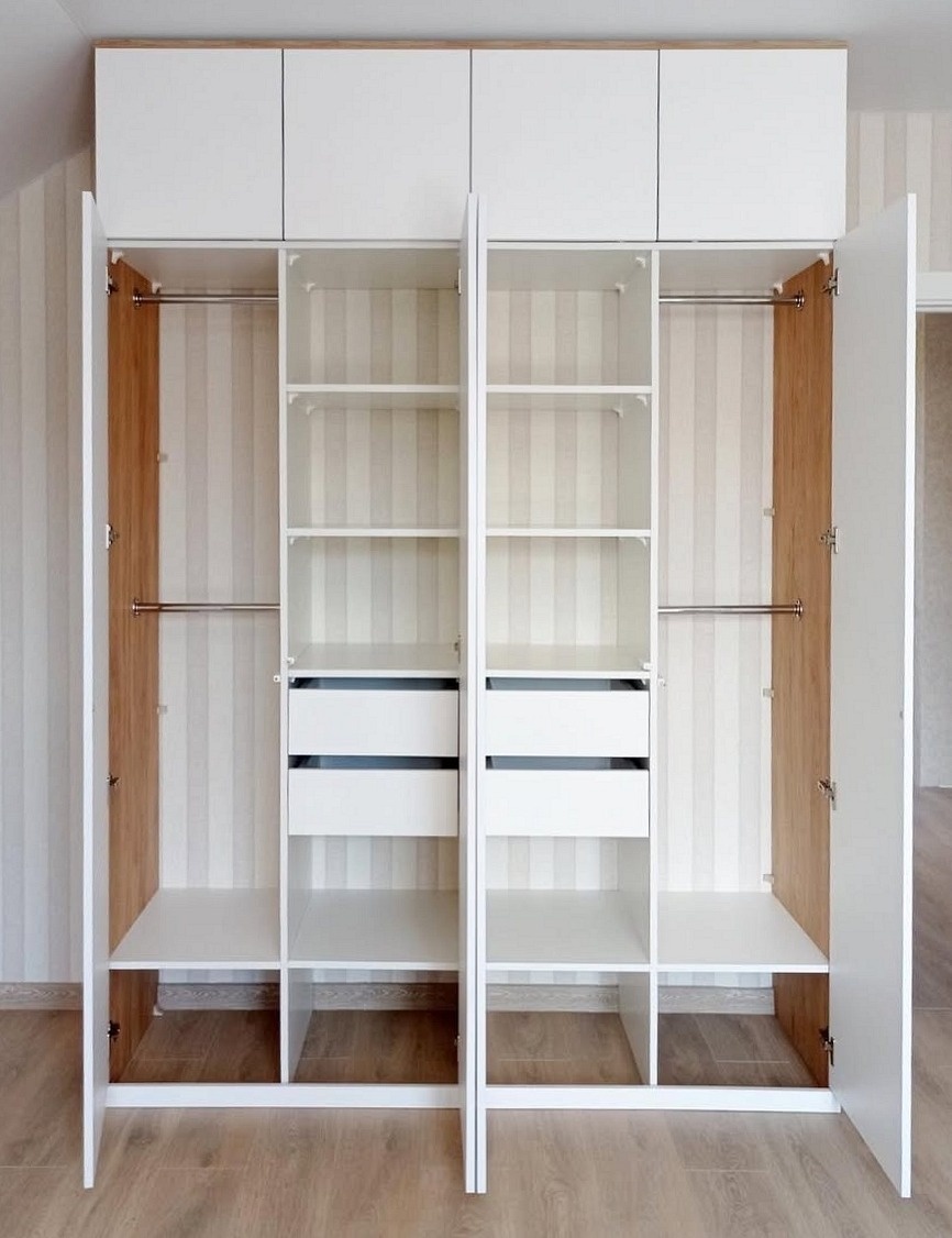 Белый 4х-дверный шкаф в стиле сканди в спальню «Модель 518»