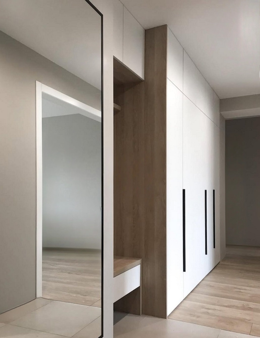 Встроенная прихожая в скандинавском стиле с зеркалом «Модель 332»