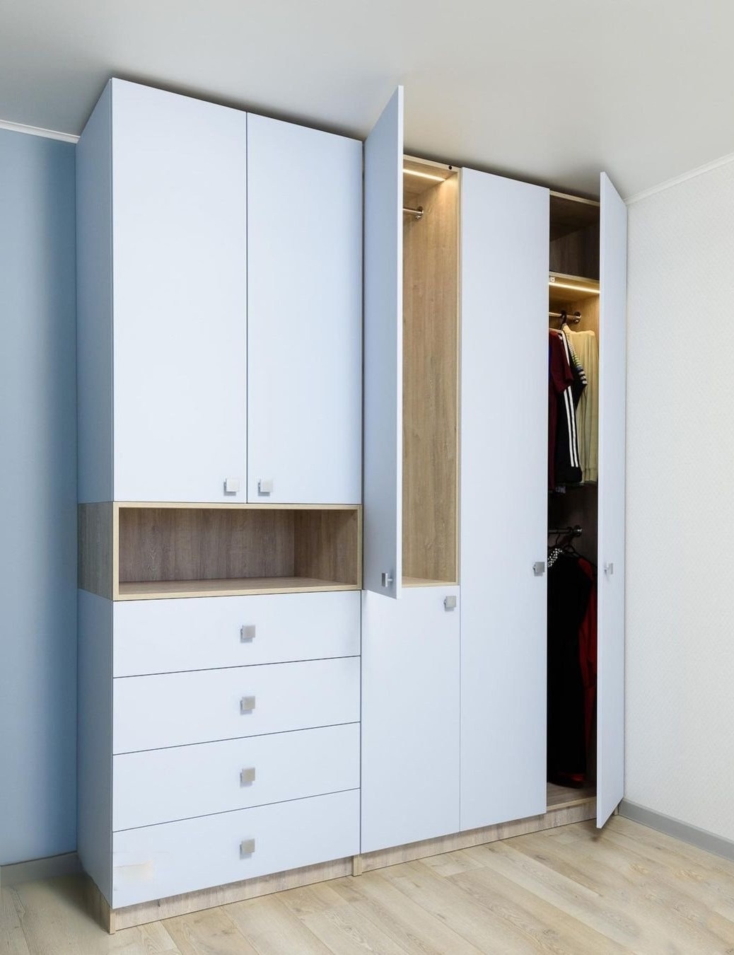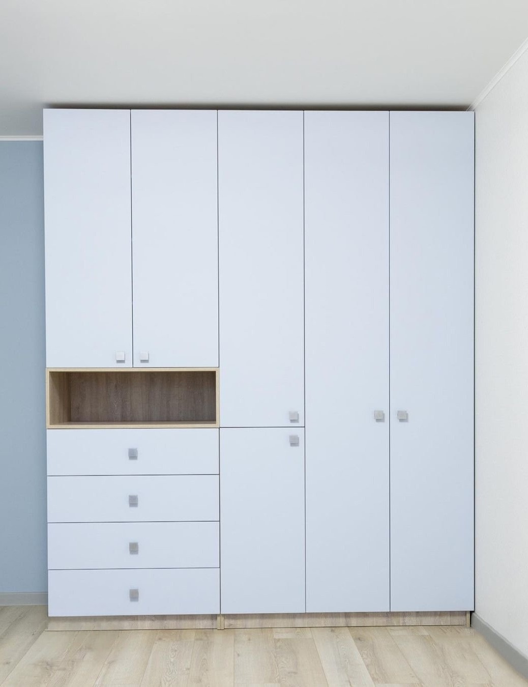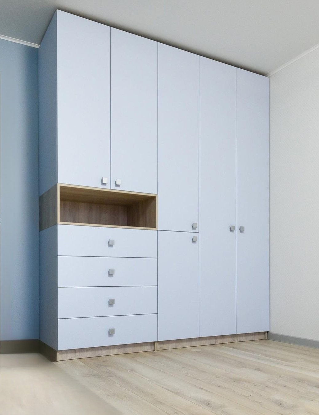 Шкаф распашной голубого цвета с открытой полкой «Модель 427»