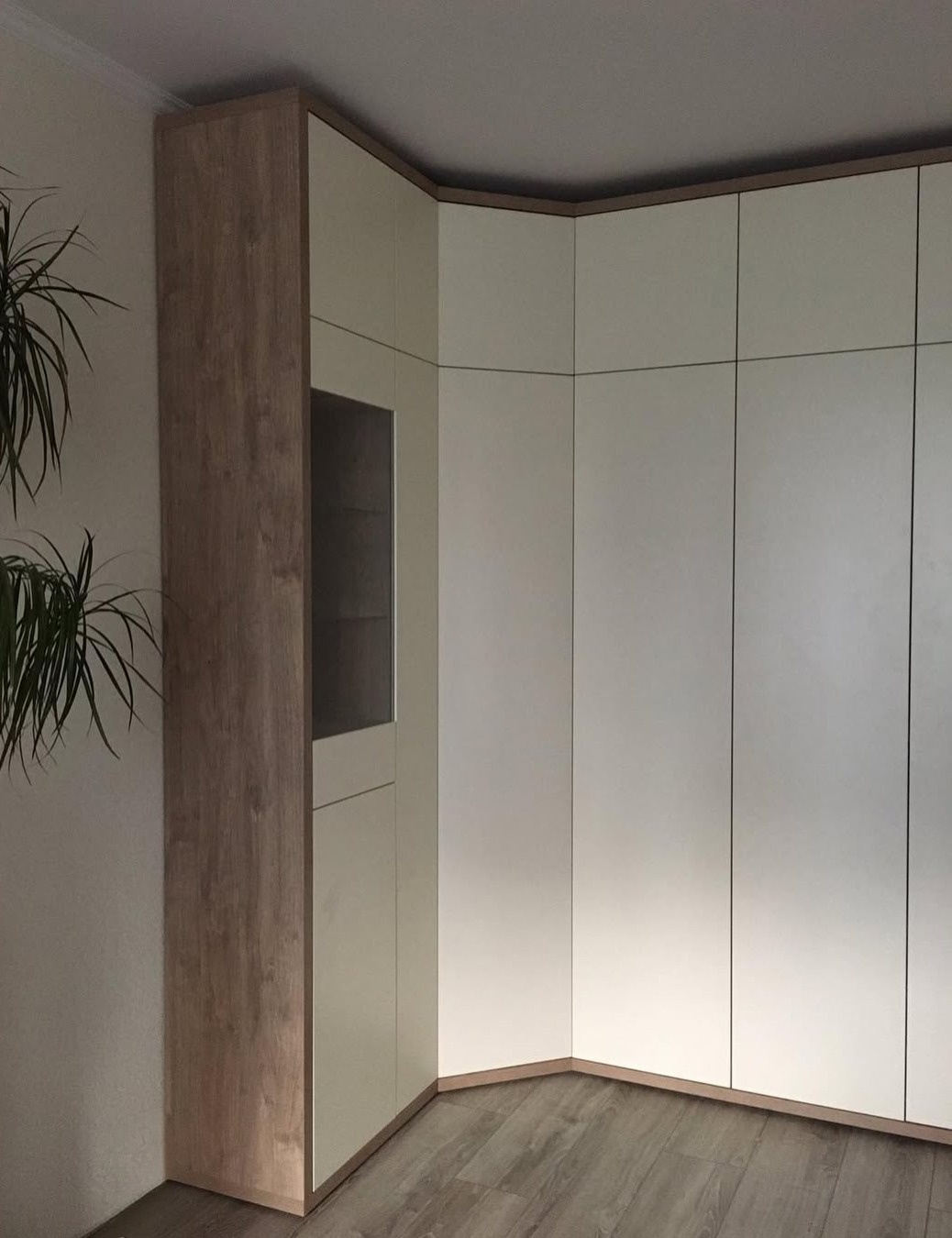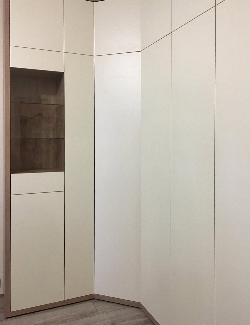 Угловой шкаф из МДФ белого цвета в минимализме «Модель 1158»