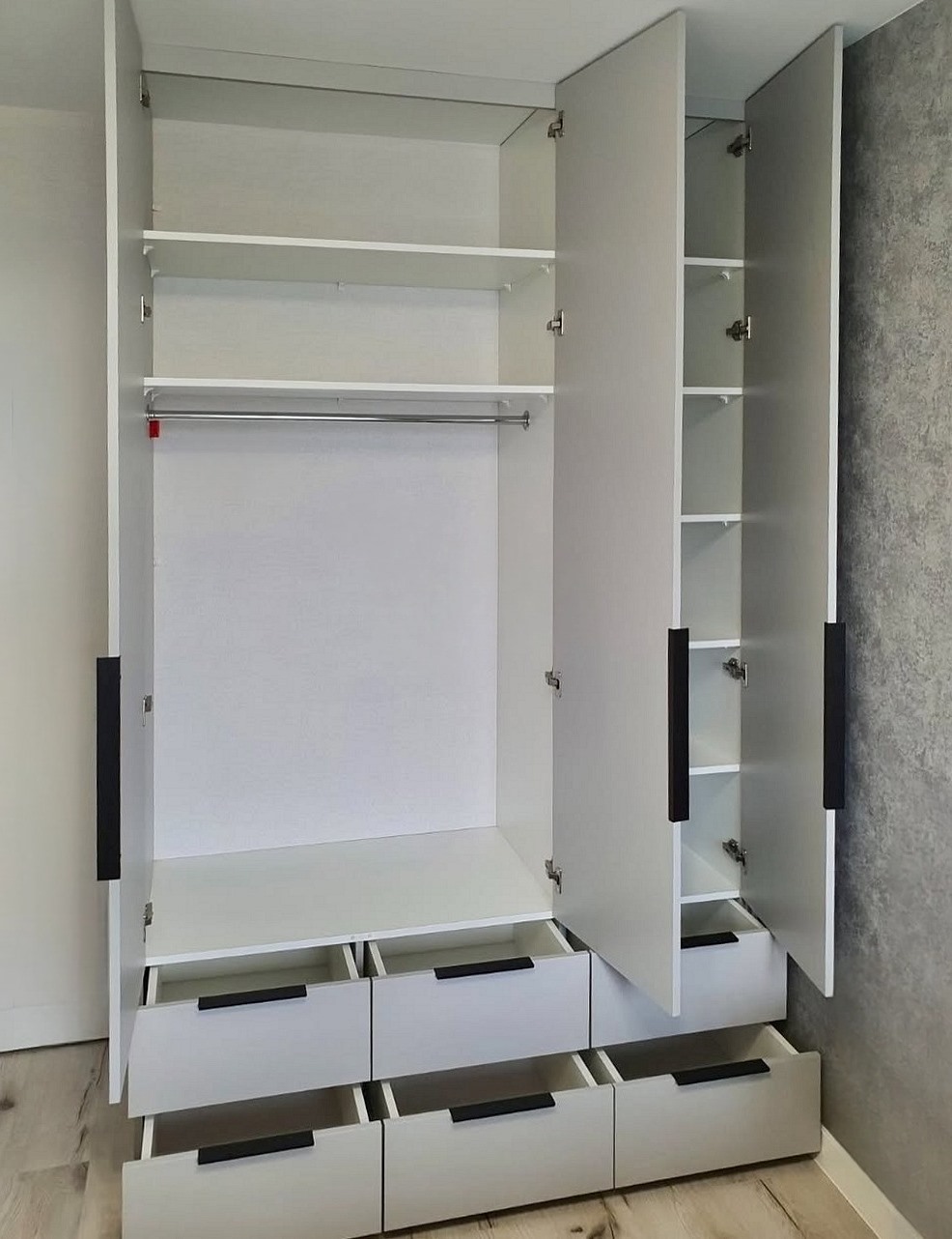 Белый распашной трехстворчатый шкаф «Модель 28»