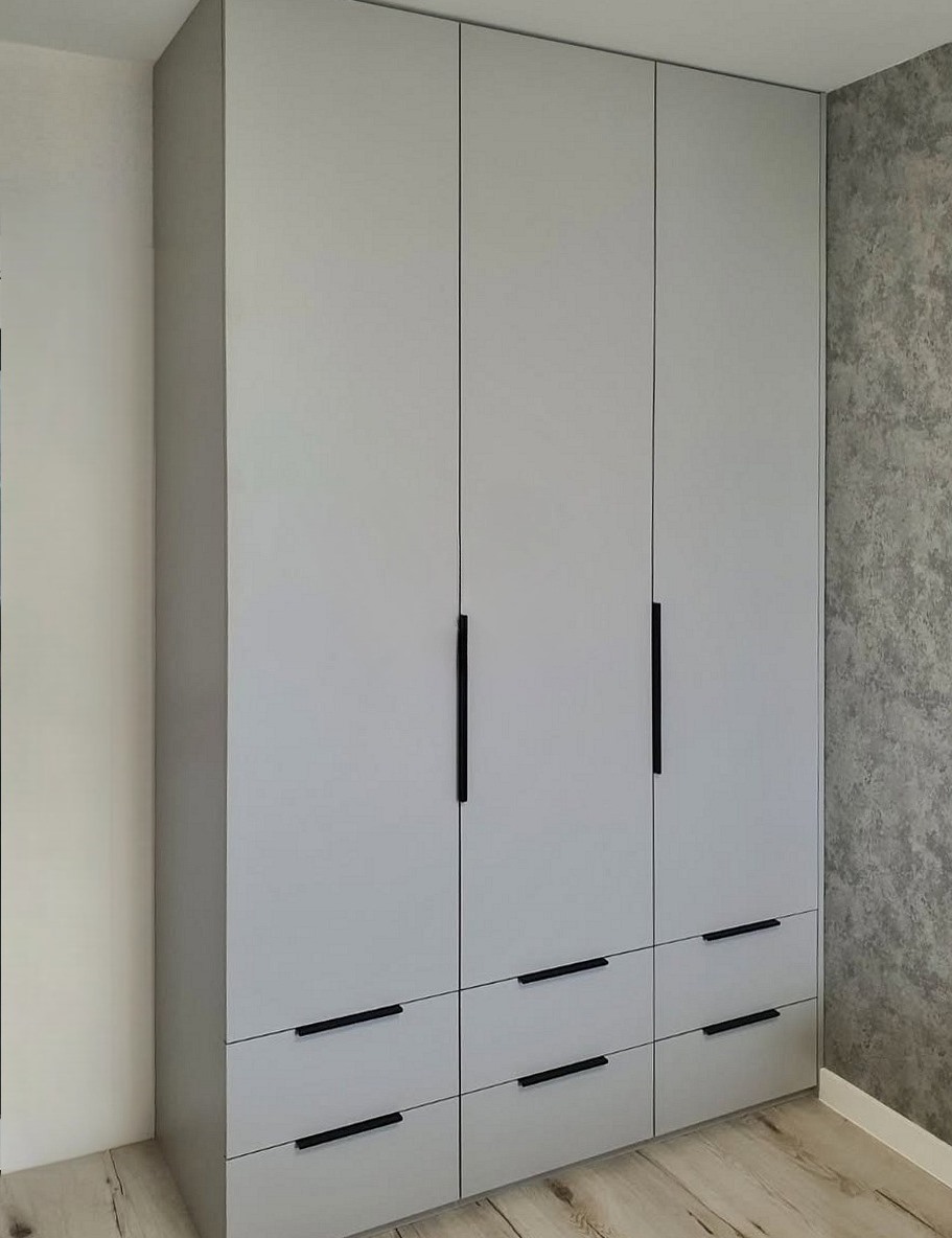 Серый распашной шкаф с интегрированными ручками «Модель 1220»
