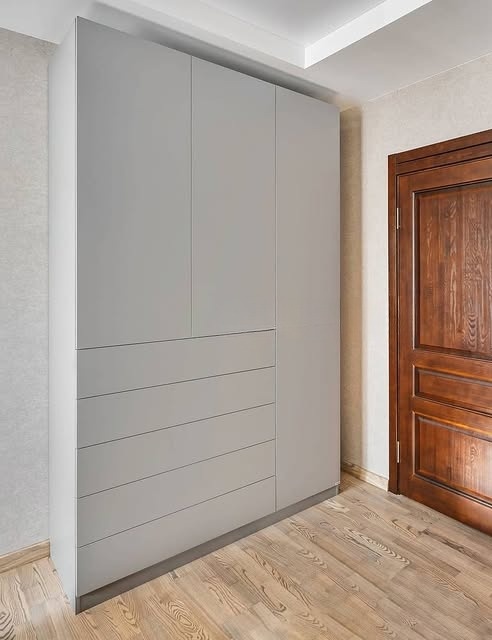 Встраиваемый шкаф вокруг двери серого цвета в минимализме «Модель 1318»