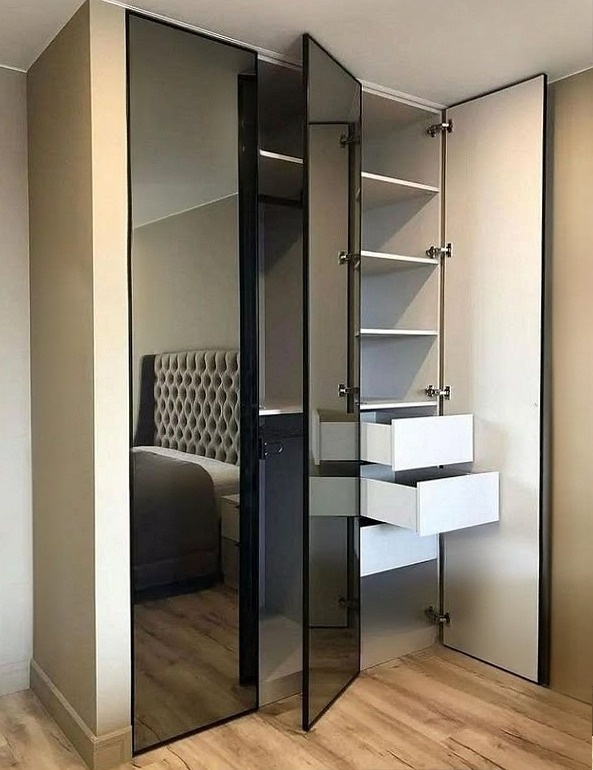 Зеркальный шкаф в прихожую с дверями-гармошка «Модель 18»