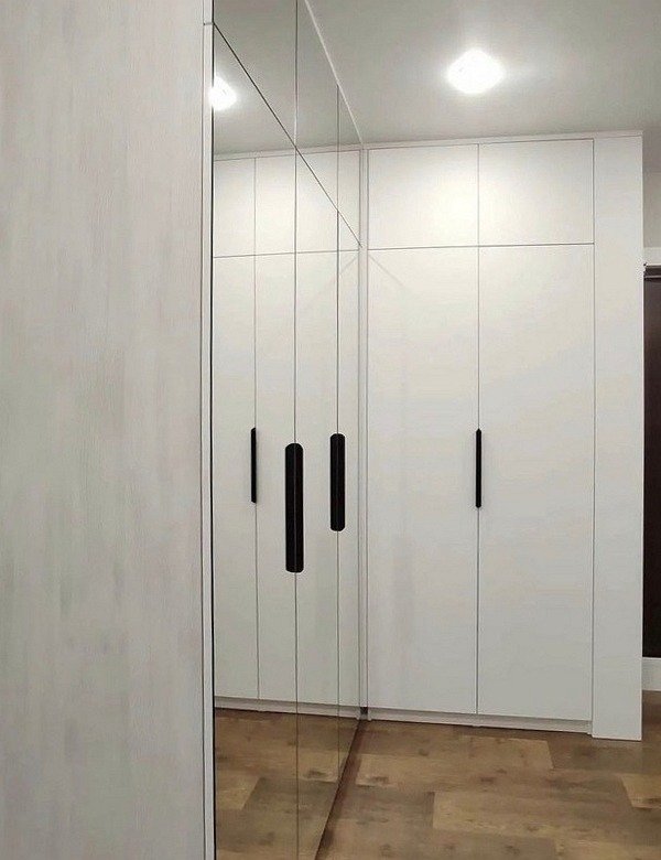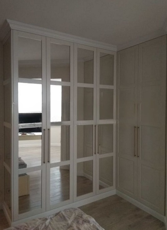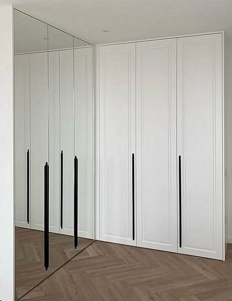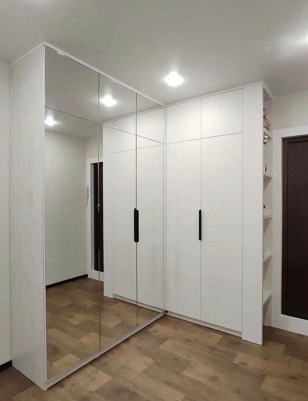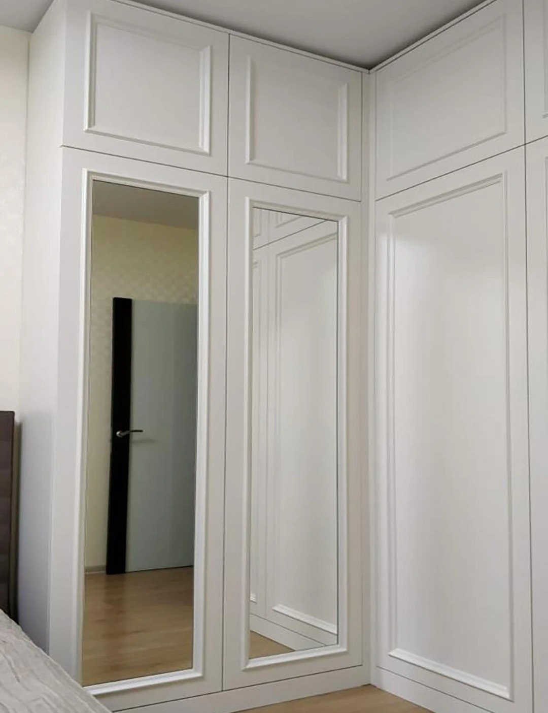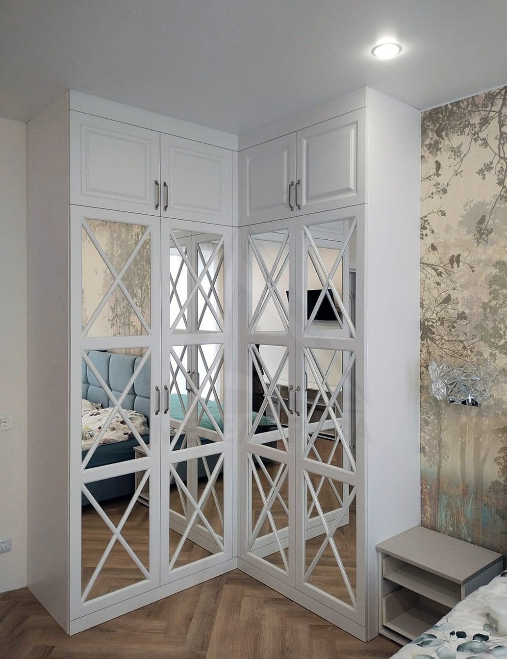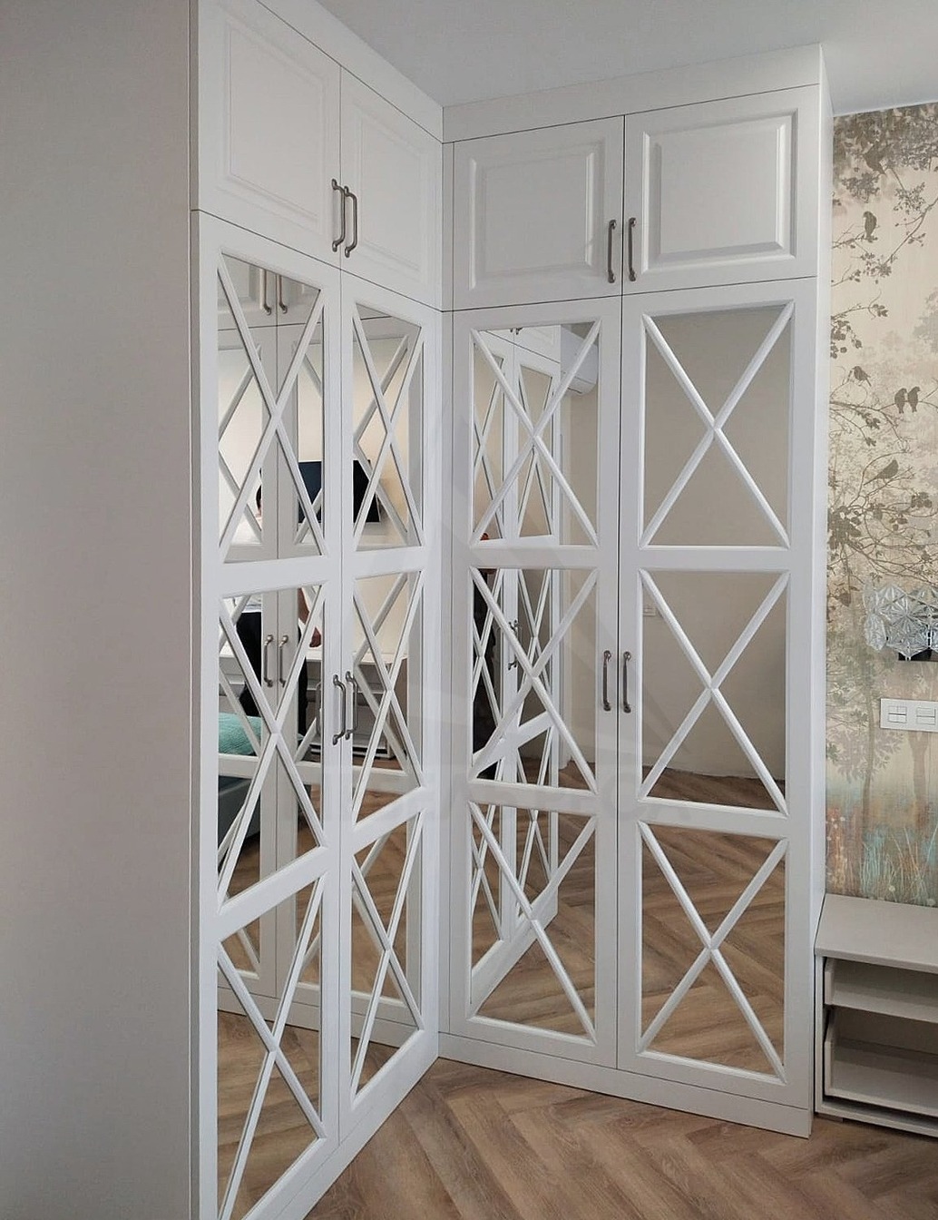 Встроенный угловой шкаф с зеркальными дверями и фрезеровкой «Модель 561»