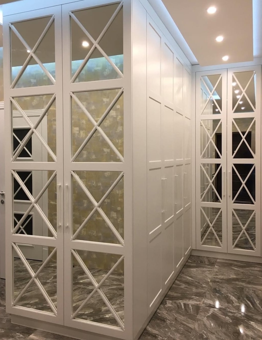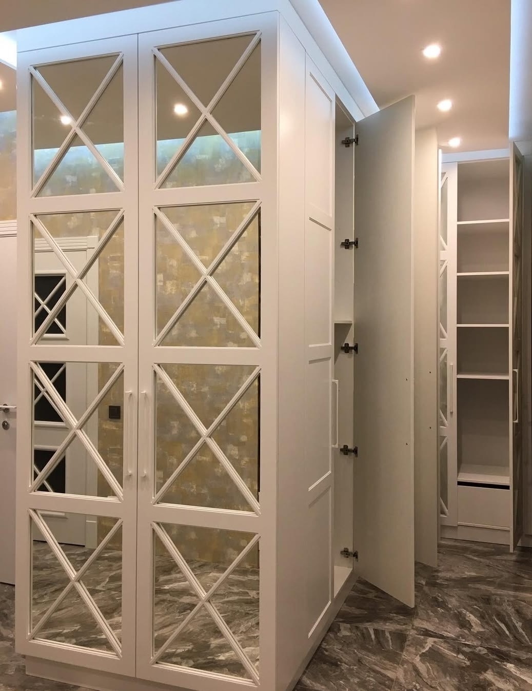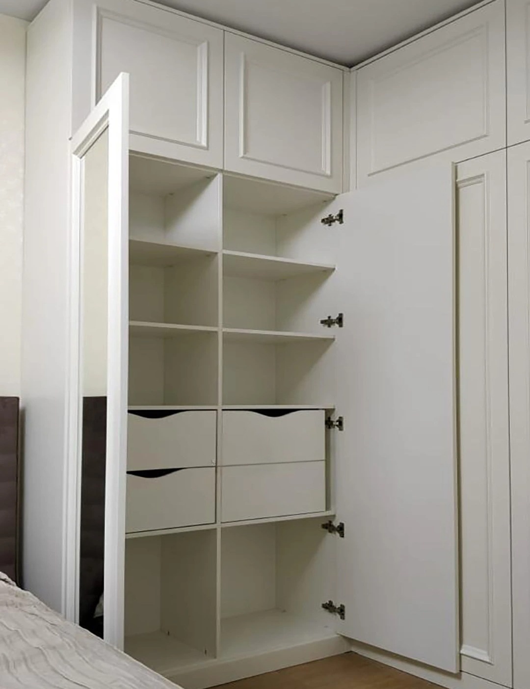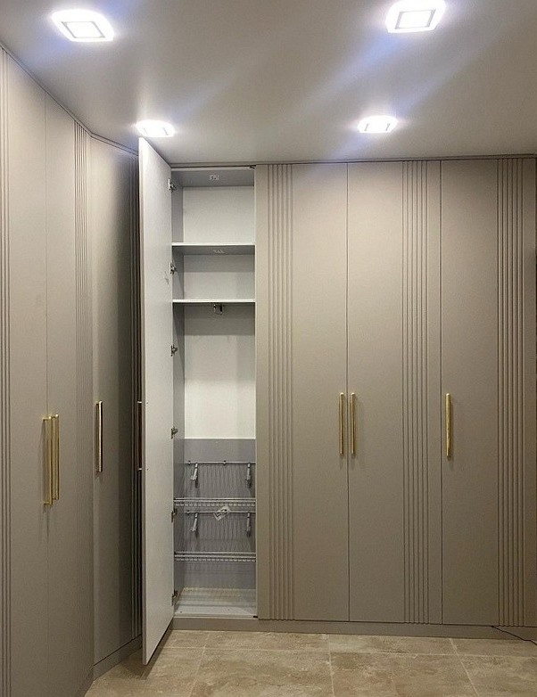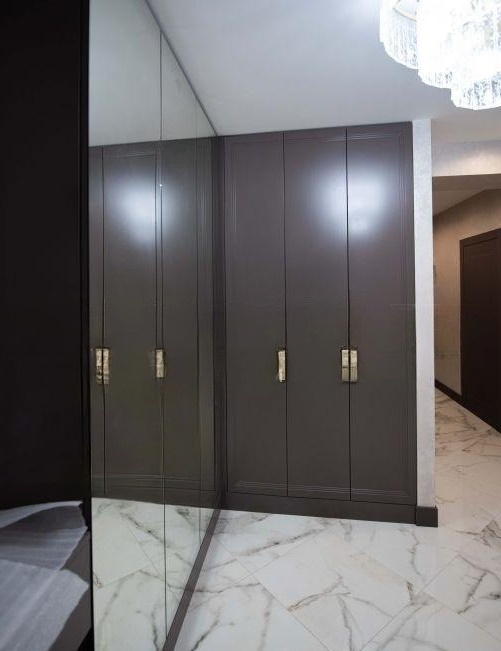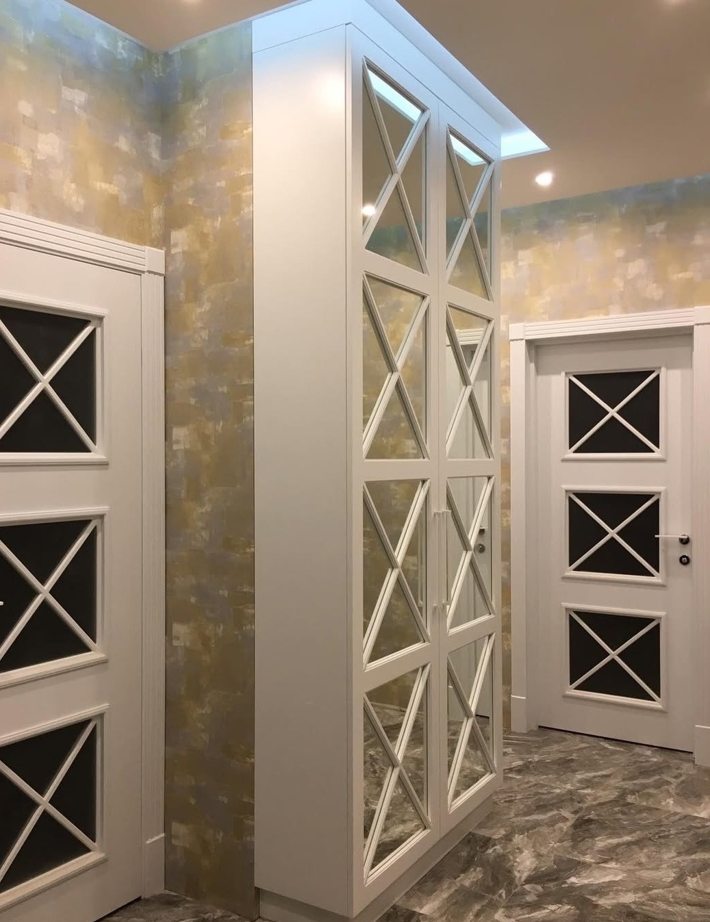 Встроенный угловой шкаф с зеркальными дверями и фрезеровкой «Модель 561»