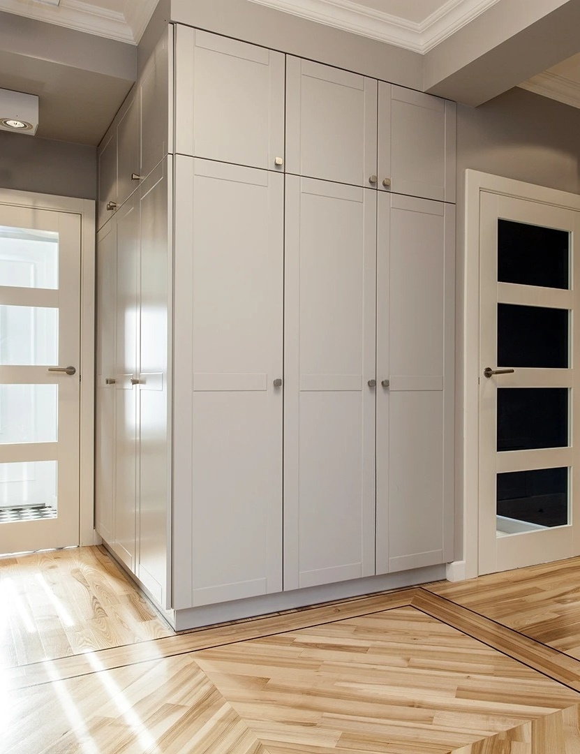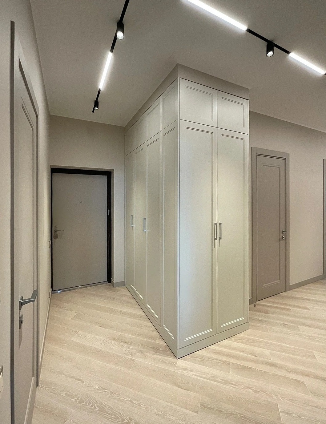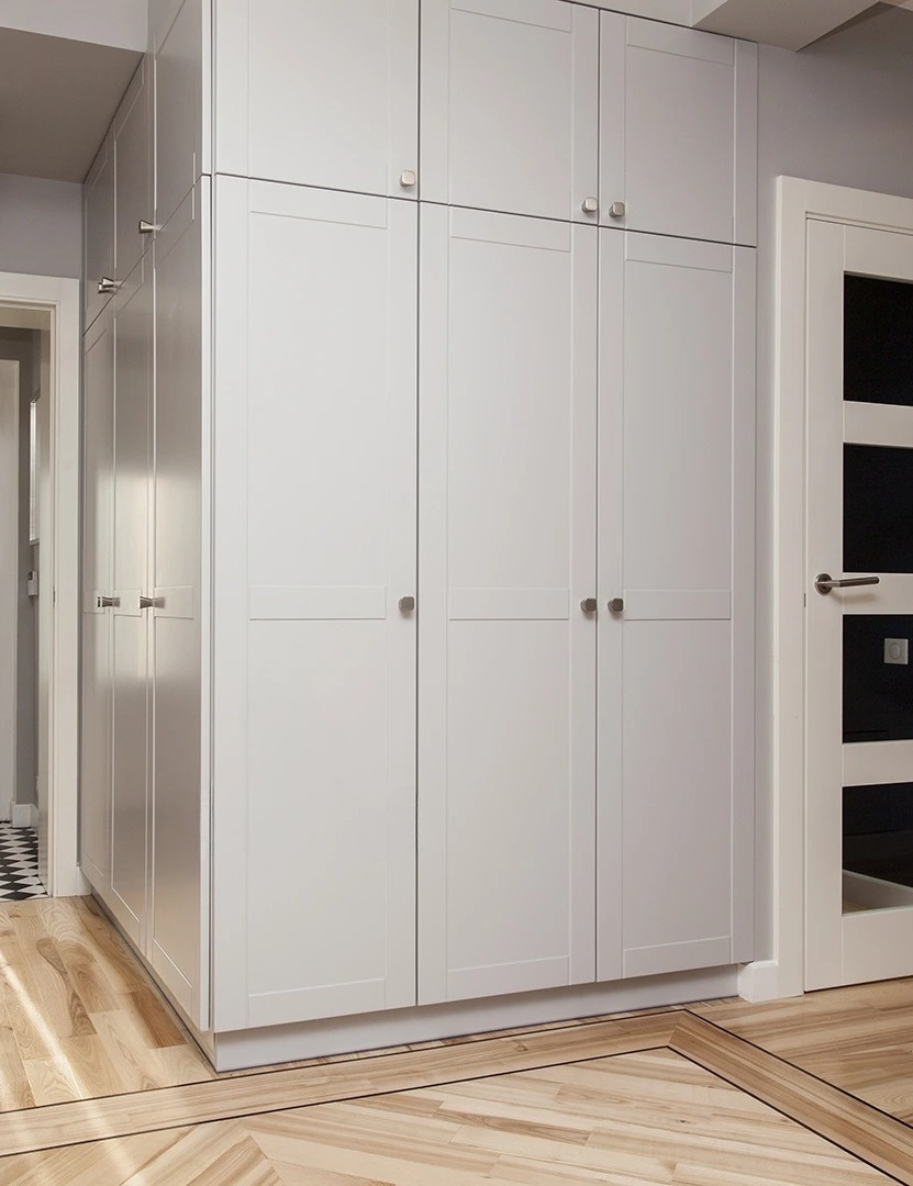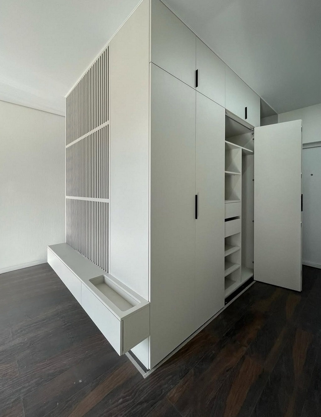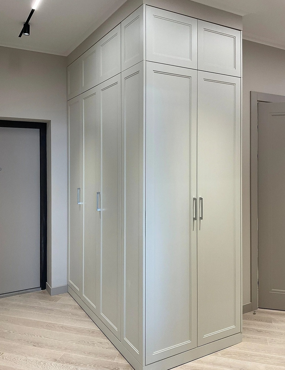 Белый встроенный угловой шкаф в коридор «Модель 1137»