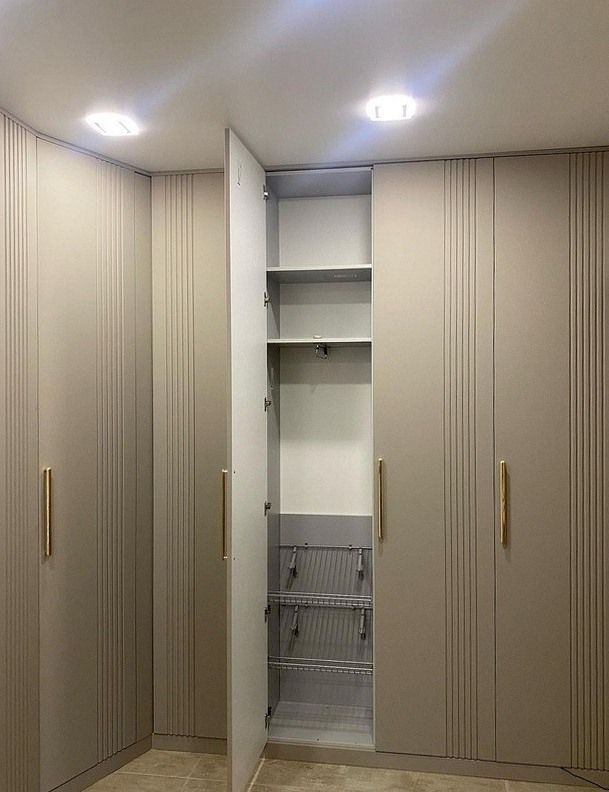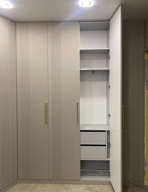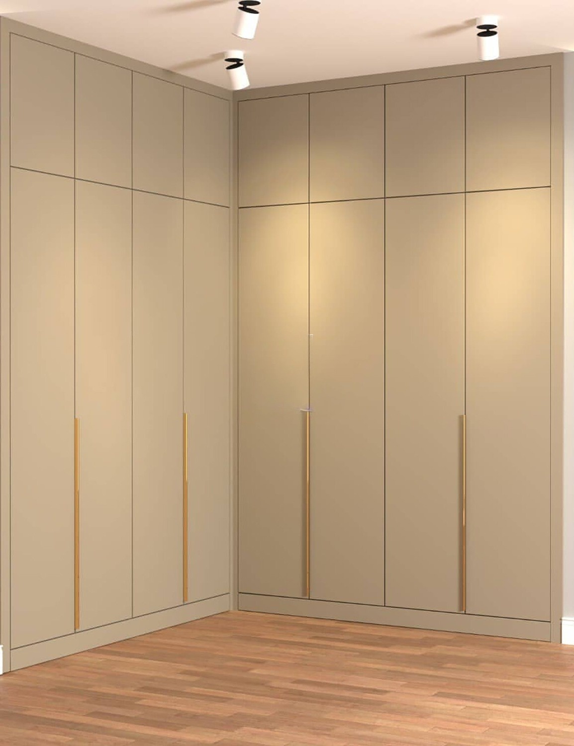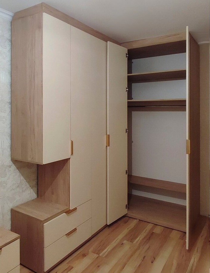 Распашной угловой шкаф на заказ из ЛДСП бежевого цвета «Модель 1152»