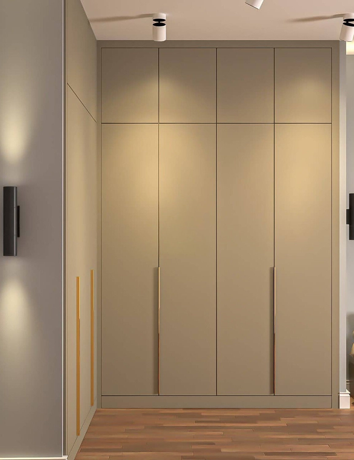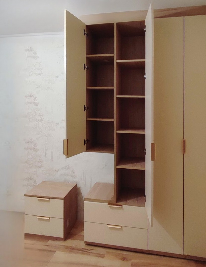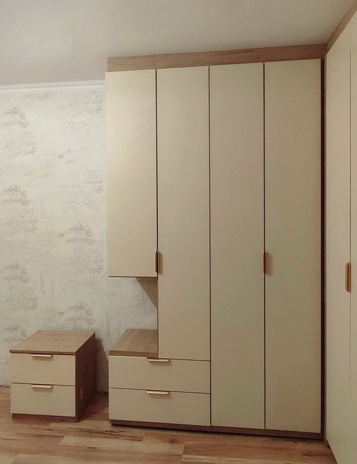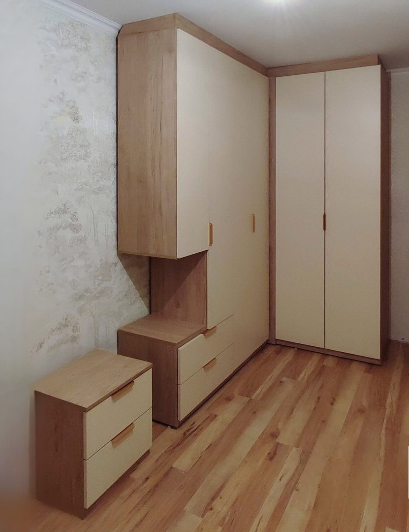 Распашной угловой шкаф на заказ из ЛДСП бежевого цвета «Модель 1152»