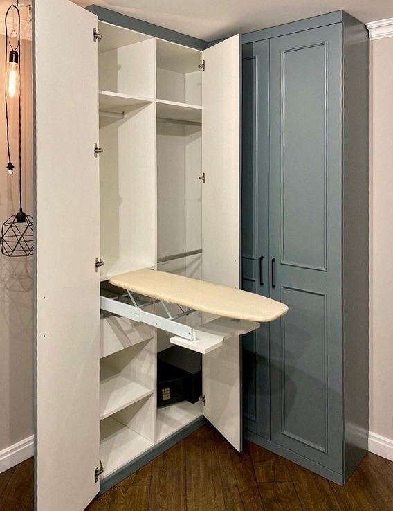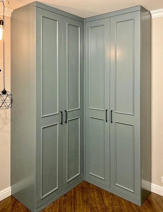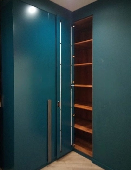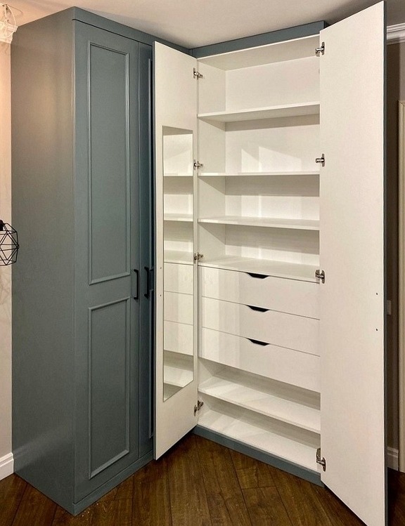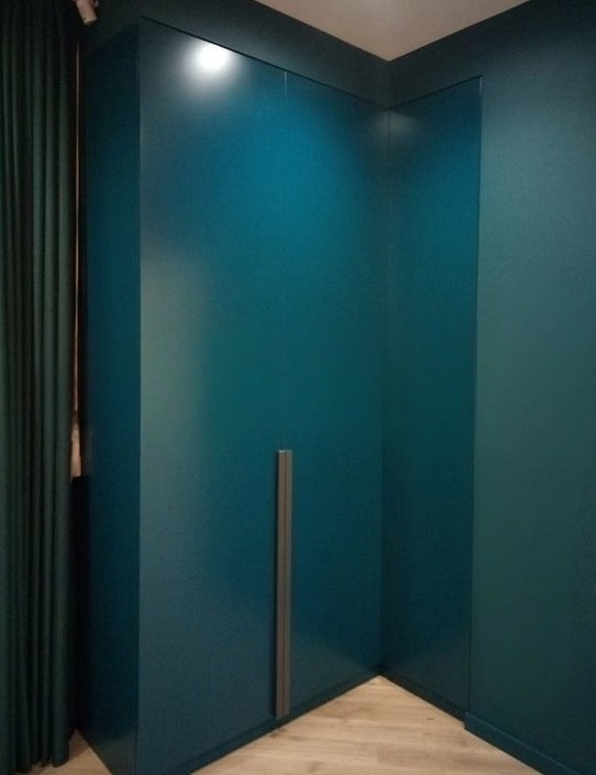 Угловой распашной шкаф синего цвета из ЛДСП «Модель 1121»