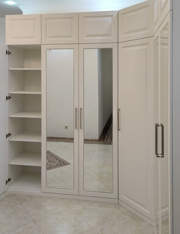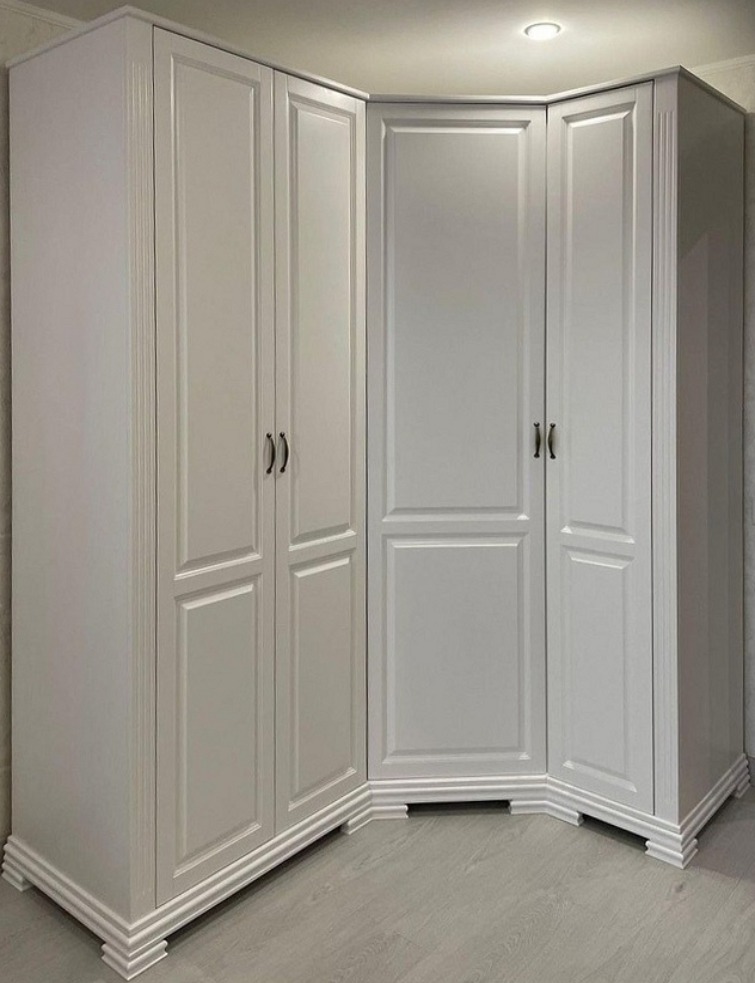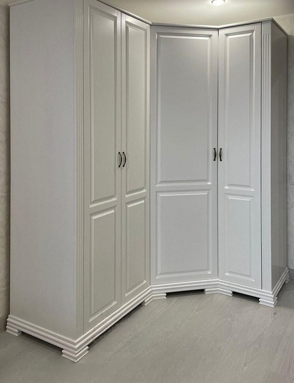 Классический угловой шкаф из МДФ белого цвета «Модель 1196»