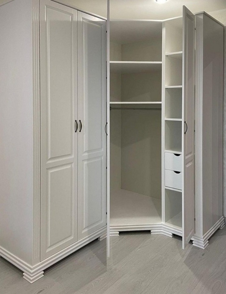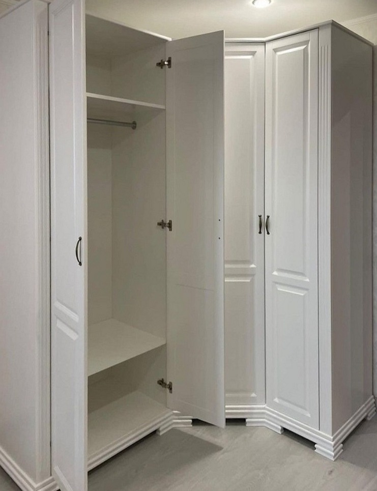 Распашной угловой белый шкаф в спальню «Модель 1160»