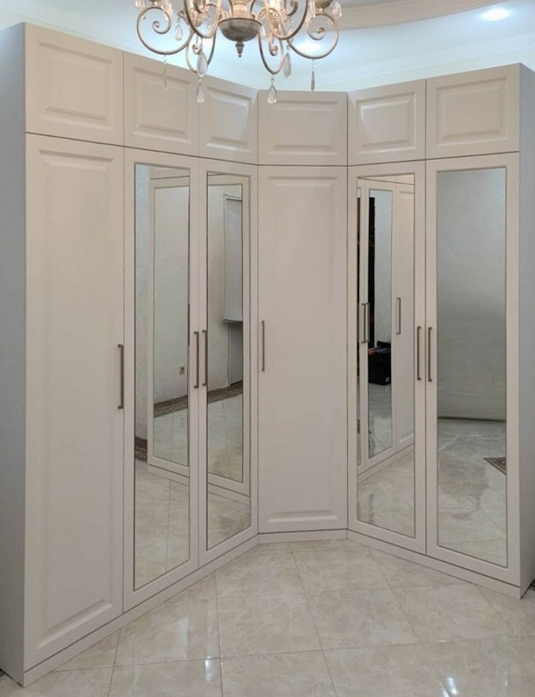 Угловой шкаф белого цвета с зеркалом «Модель 1156»