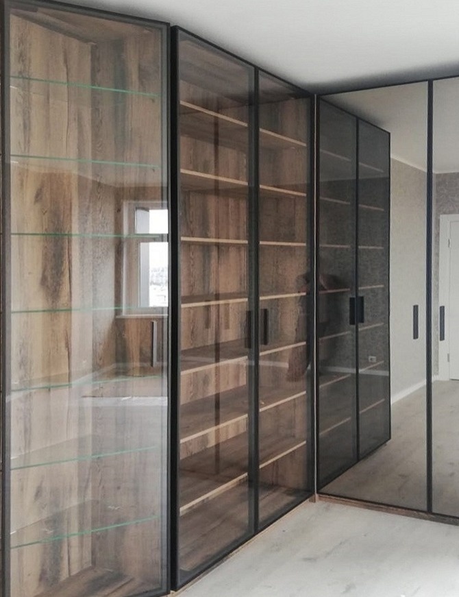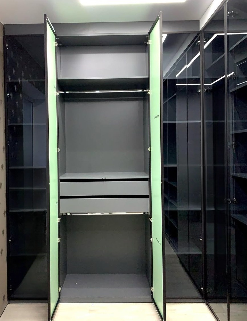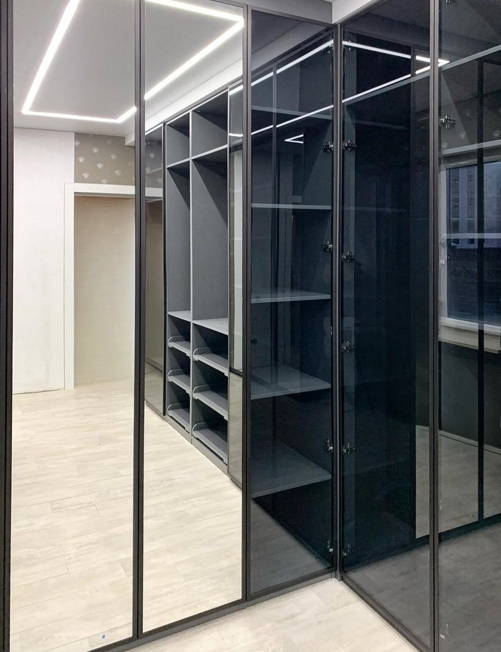 Угловой шкаф с тонированным зеркалом и черным профилем «Модель 590»