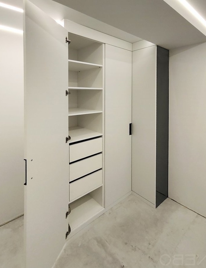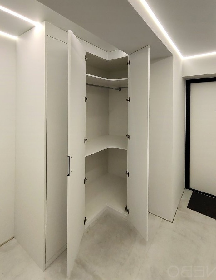 Угловой шкаф из МДФ белого цвета в минимализме «Модель 1158»