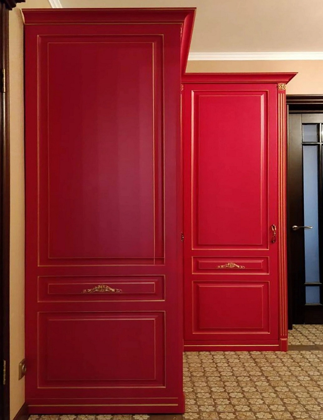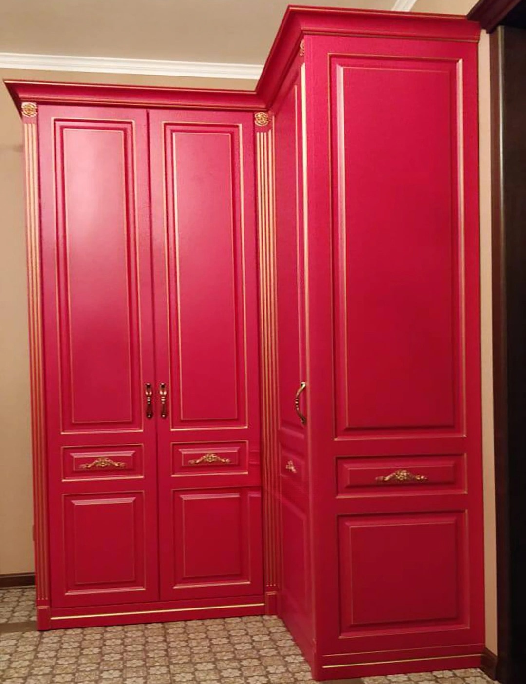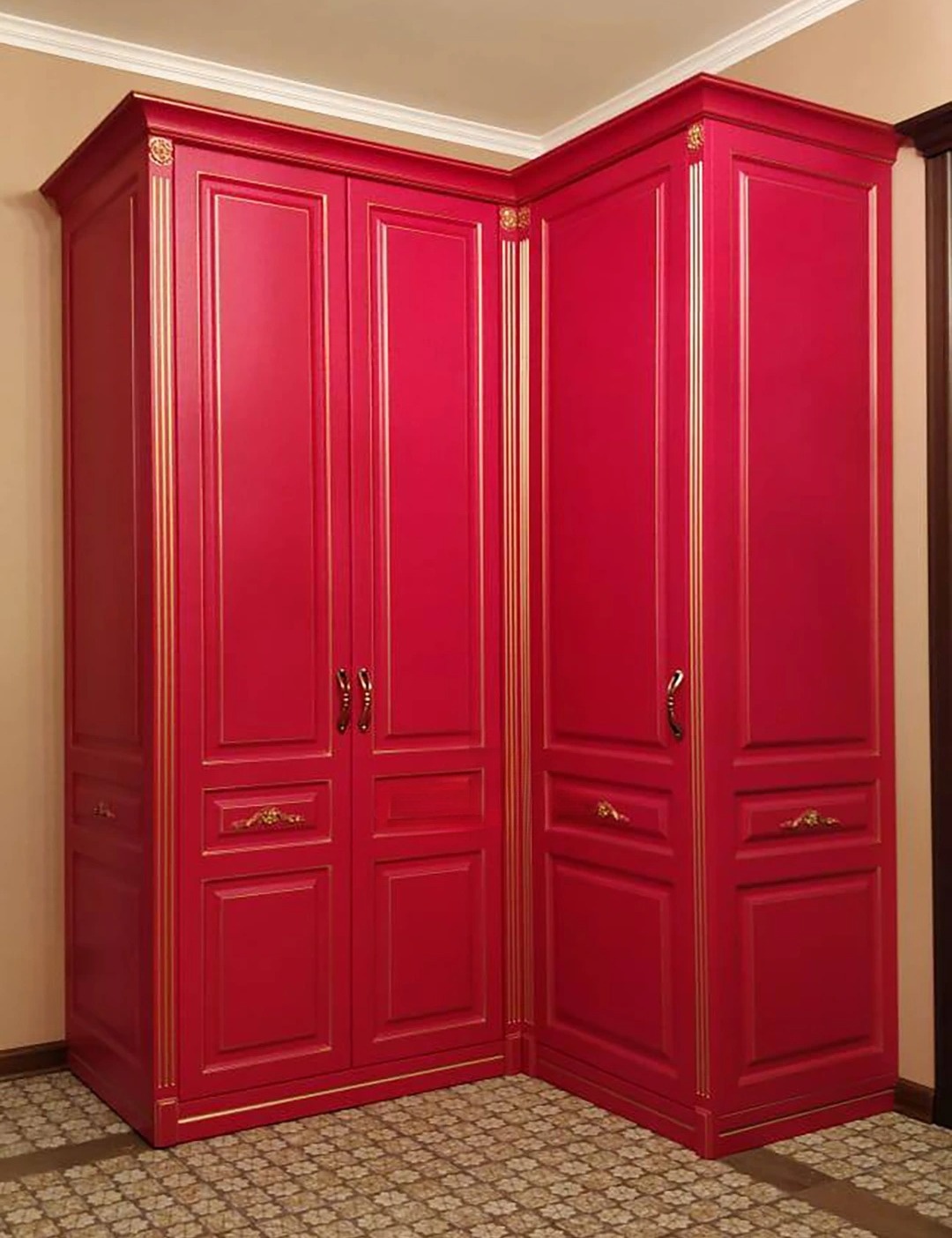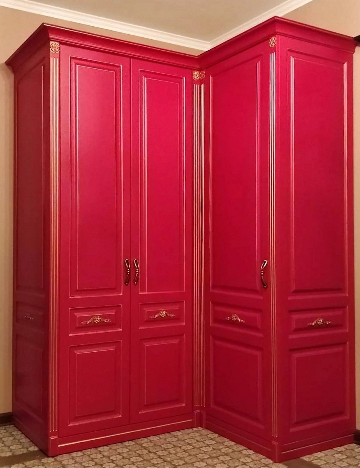 Эксклюзивный угловой красный шкаф с фрезерованными дверями «Модель 1125»
