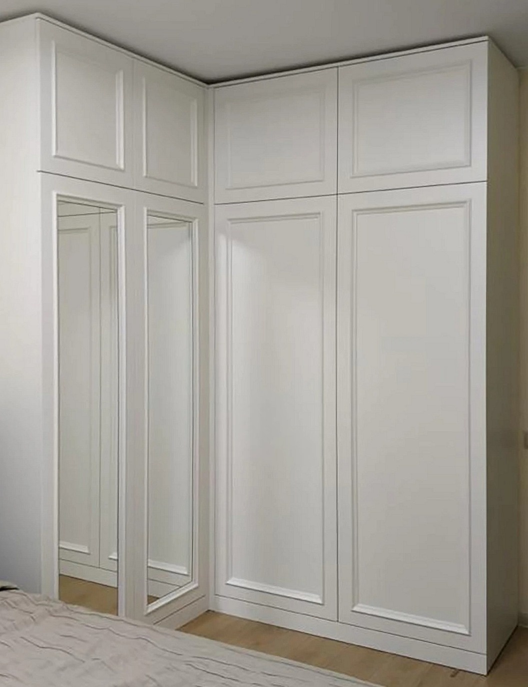 Угловой белый шкаф с зеркальным фасадом в спальню «Модель 1133»