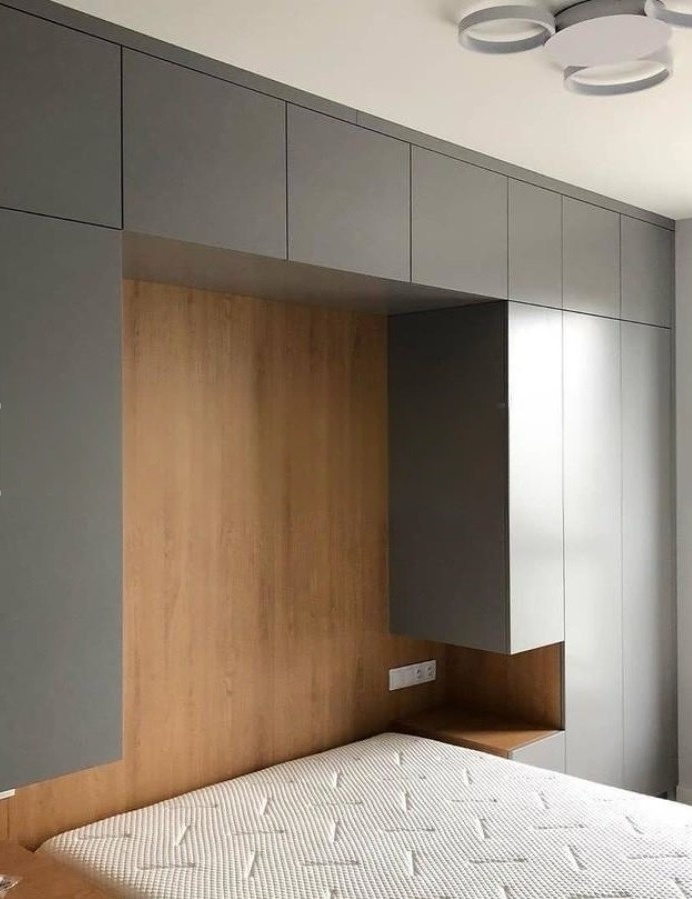 Встраиваемый серый П-образный шкаф на мансарду «Модель 855»